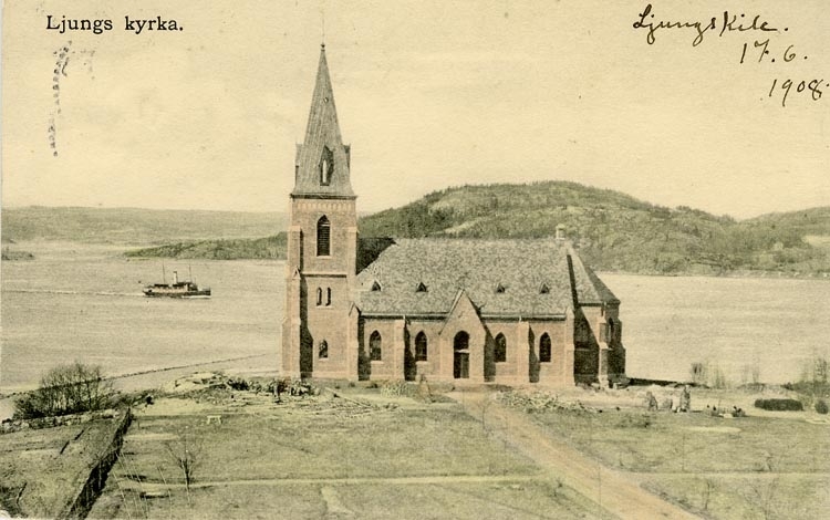 Enligt Bengt Lundins noteringar: "Ljungs nya kyrka med ångbåt".