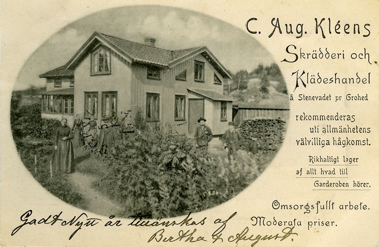 Enligt Bengt Lundins noteringar: "C Aug. Kléens skrädderi. Reklamkort".