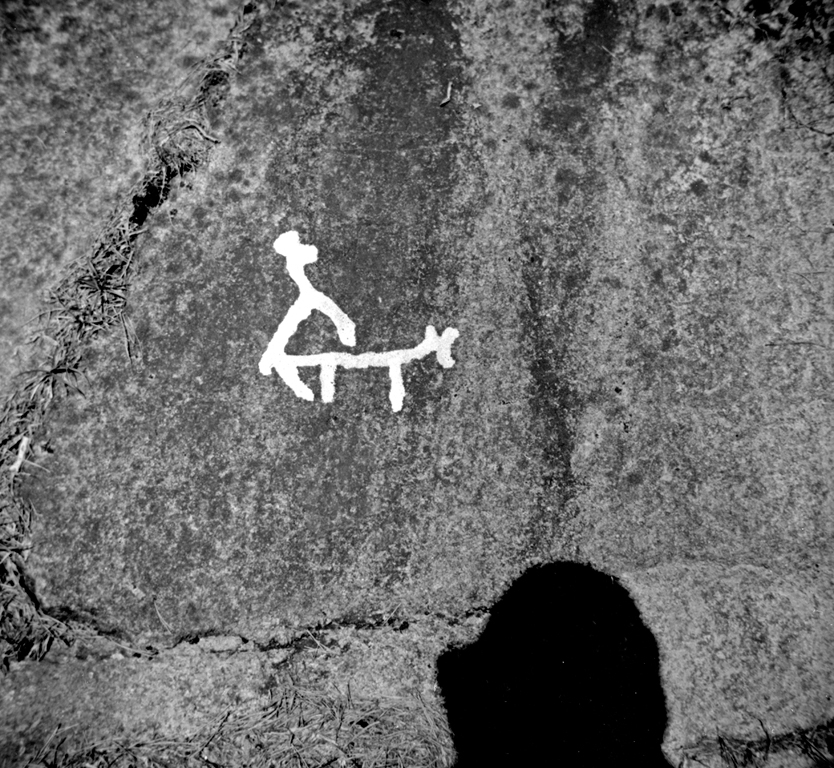 Enligt text: "Film n:r a3034. Hällristning (5). Hakeröd Kville s:n o h:d Bohuslän. Foto Å Fredsjö 7/7 1955".