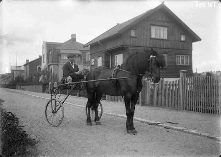 Enligt tidigare noteringar: "Man på sulky med förspänd häst."