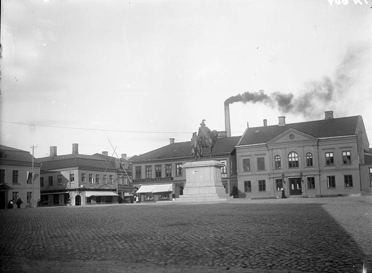 Enligt tidigare noteringar: "Kungsgorget Uddevalla nordöstra delen. Statyn över Karl X Gustaf och Erik Dahlberg från 1915."