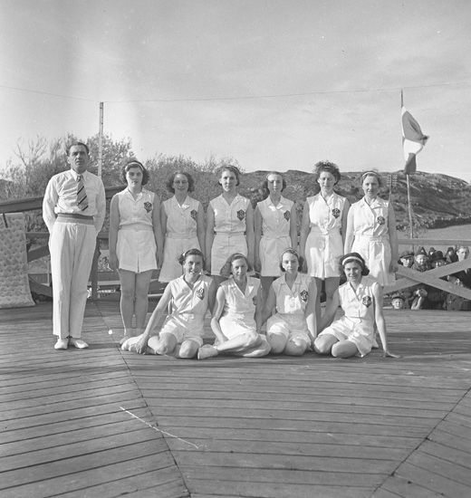 Titel: Text till bilden: "Fiskebäckskil. Gymnastikuppvisning. 1939.05.14".