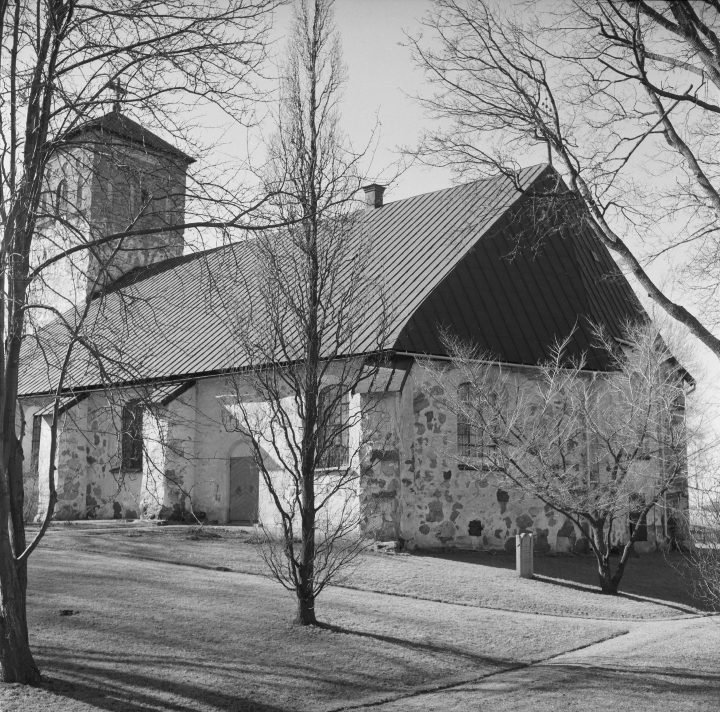 Kyrkan från sydöst. Treskeppig kyrka.