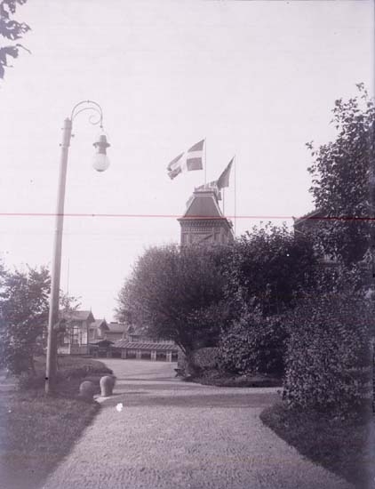 Enligt text som medföljde bilden: "Salongen o Båglampa, Lysekil 9/9 1899 tagen fr.porten till Badhuset."