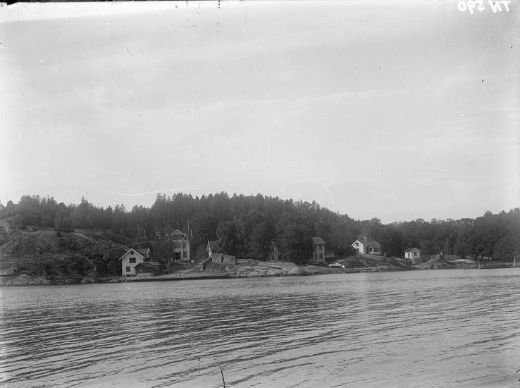 Enligt tidigare noteringar: "Vy över Stillingsön med hus och brygga från sjösidan."