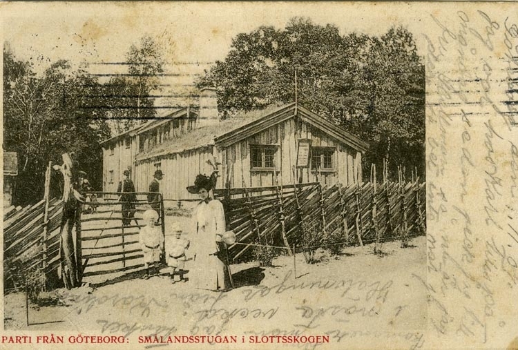 Notering på kortet: Parti från Göteborg. Smålandsstugan i Slottsskogen.
