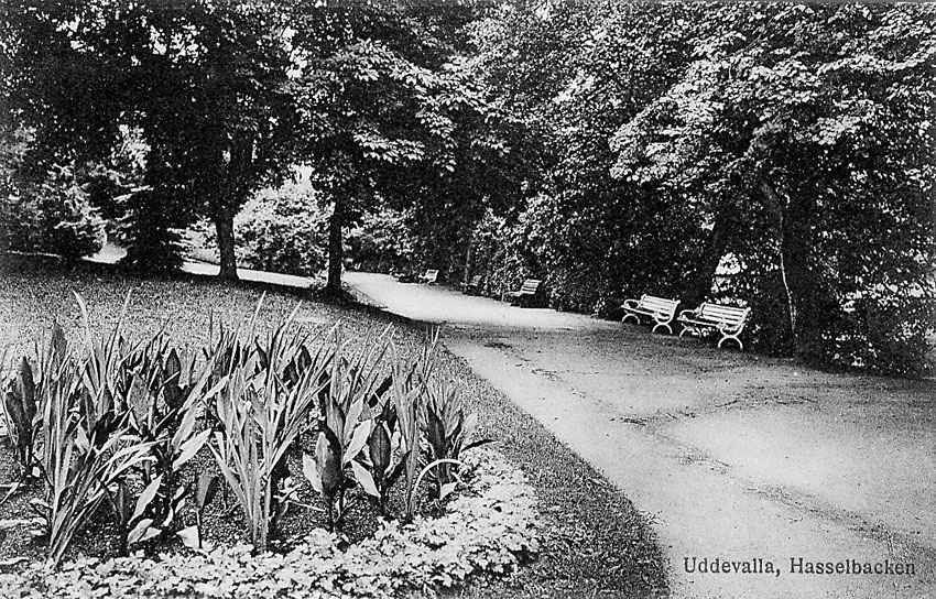 Tryckt text på vykortets framsida: "Uddevalla, Hasselbacken".