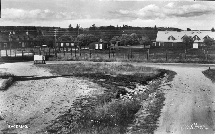Enligt Bengt Lundins noteringar: "Entrén till lägerplatsen 1952. Vykort Li 1052 Foto BL 89".