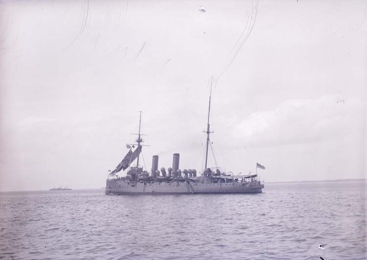 Medföljande text: "Engelsk kryssare Talbot 14/7 08".