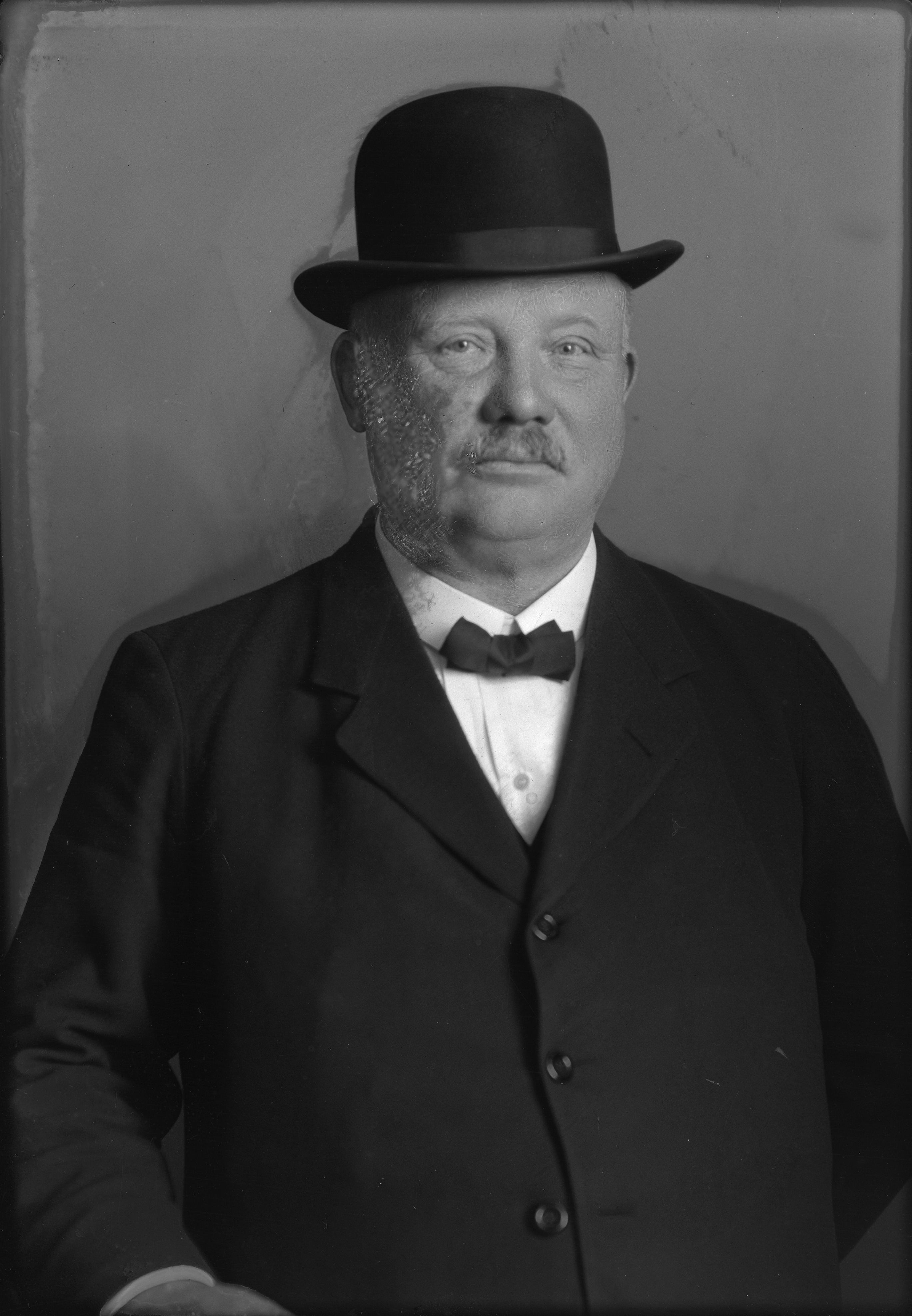 Porträtt i halvfigur av bryggeridisponent Ohlsson, iklädd plommonstop.
