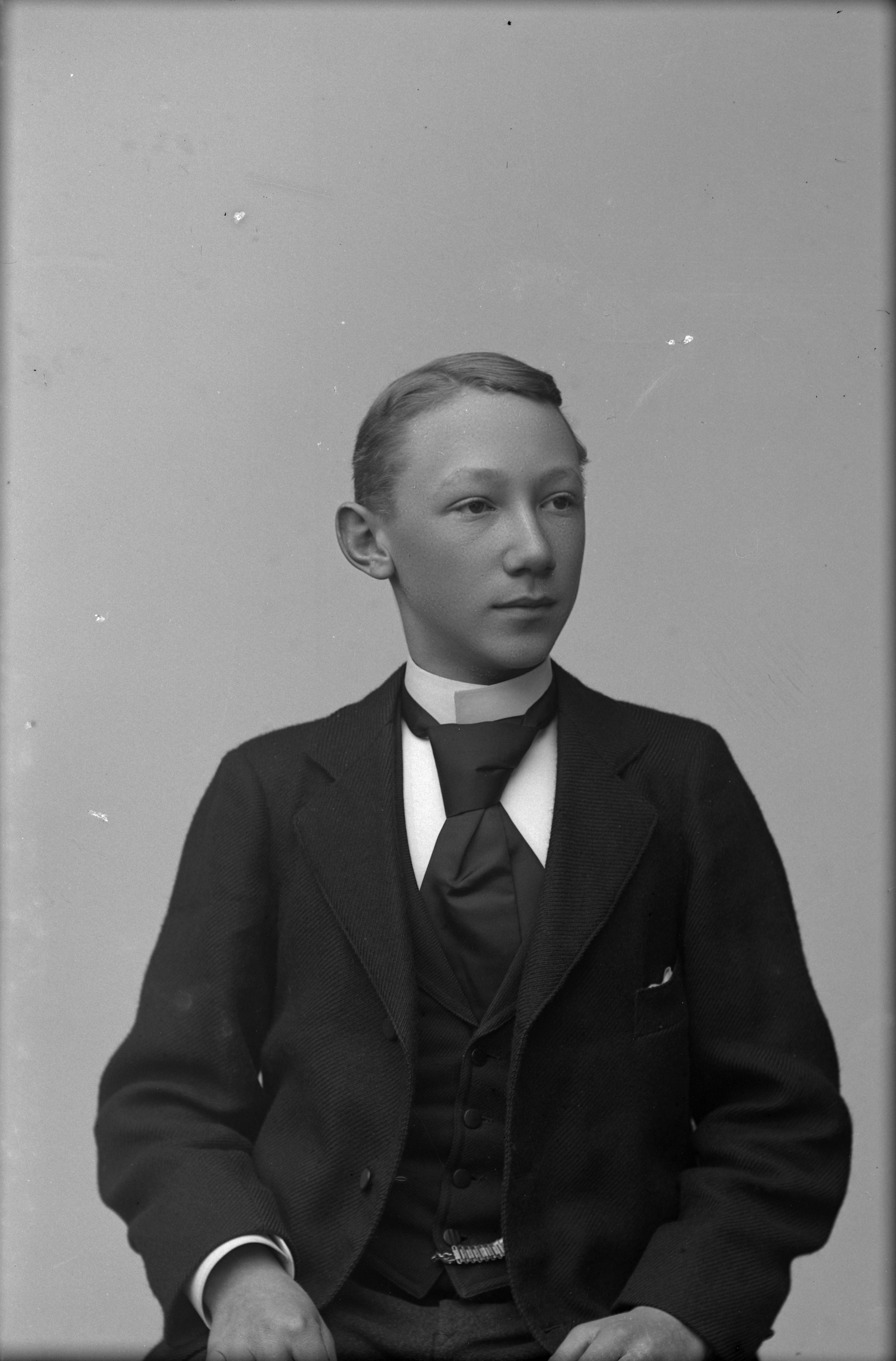 Porträtt i halvfigur av Gustaf Lundgren, järnvägselev.