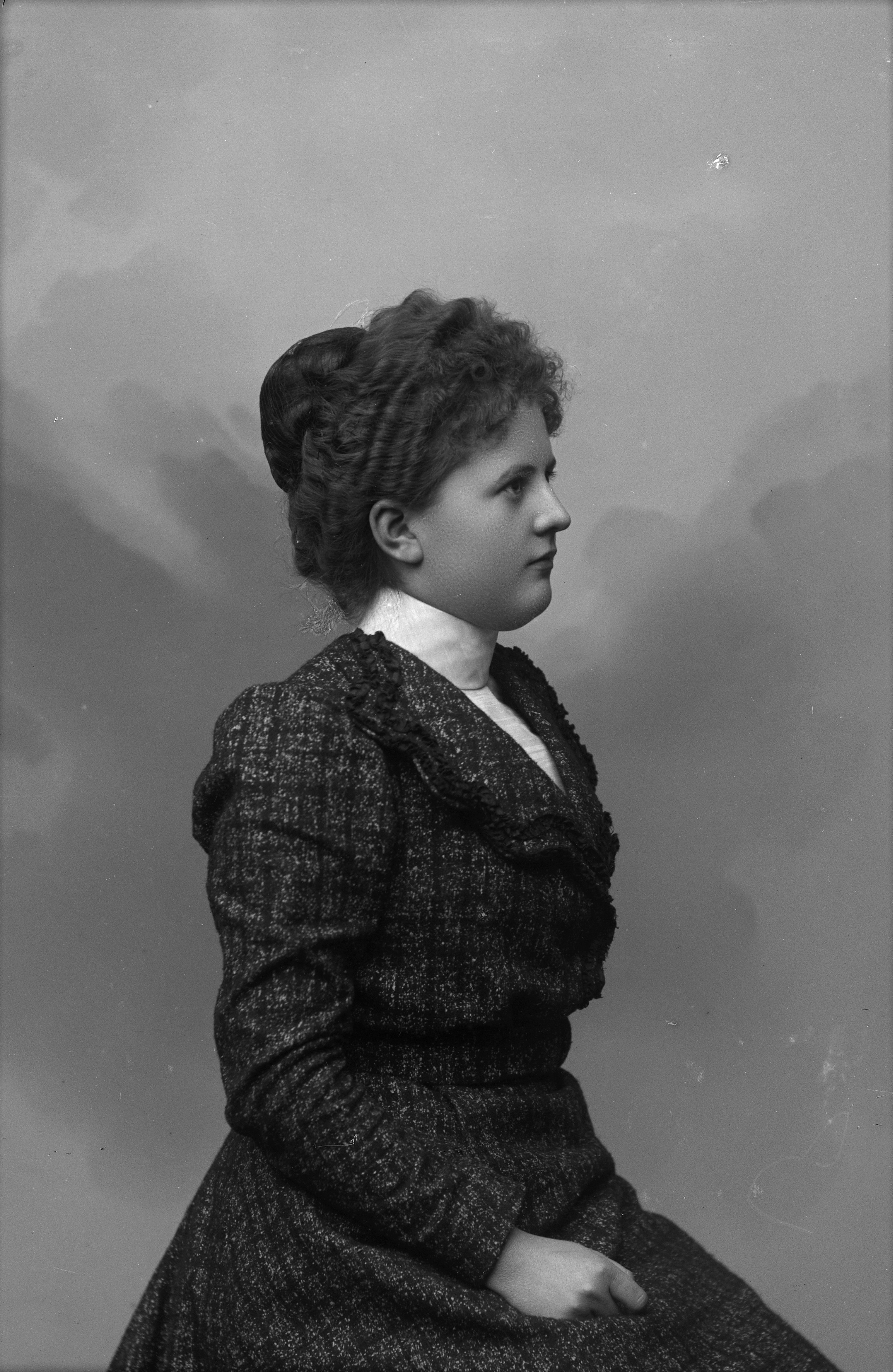 Beskrivning: Porträtt i halvfigur av Ebba Hermansson.