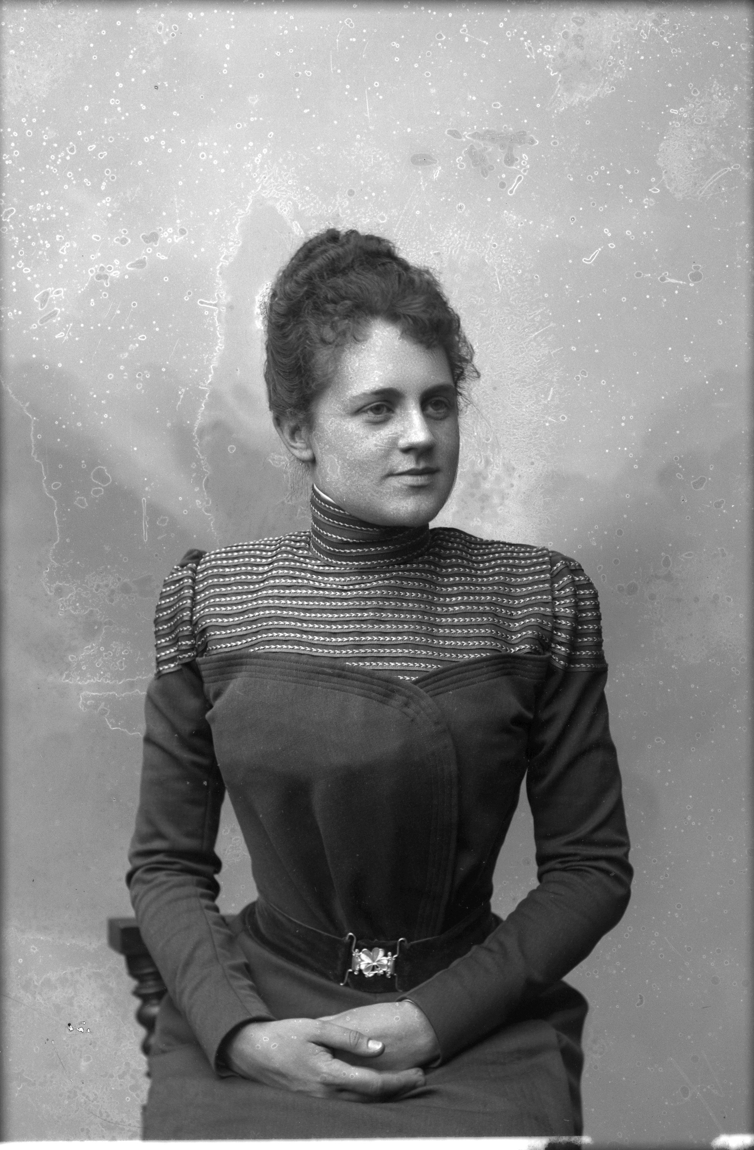 Beskrivning: Porträtt i halvfigur av Amelie /Anneli Petersson.