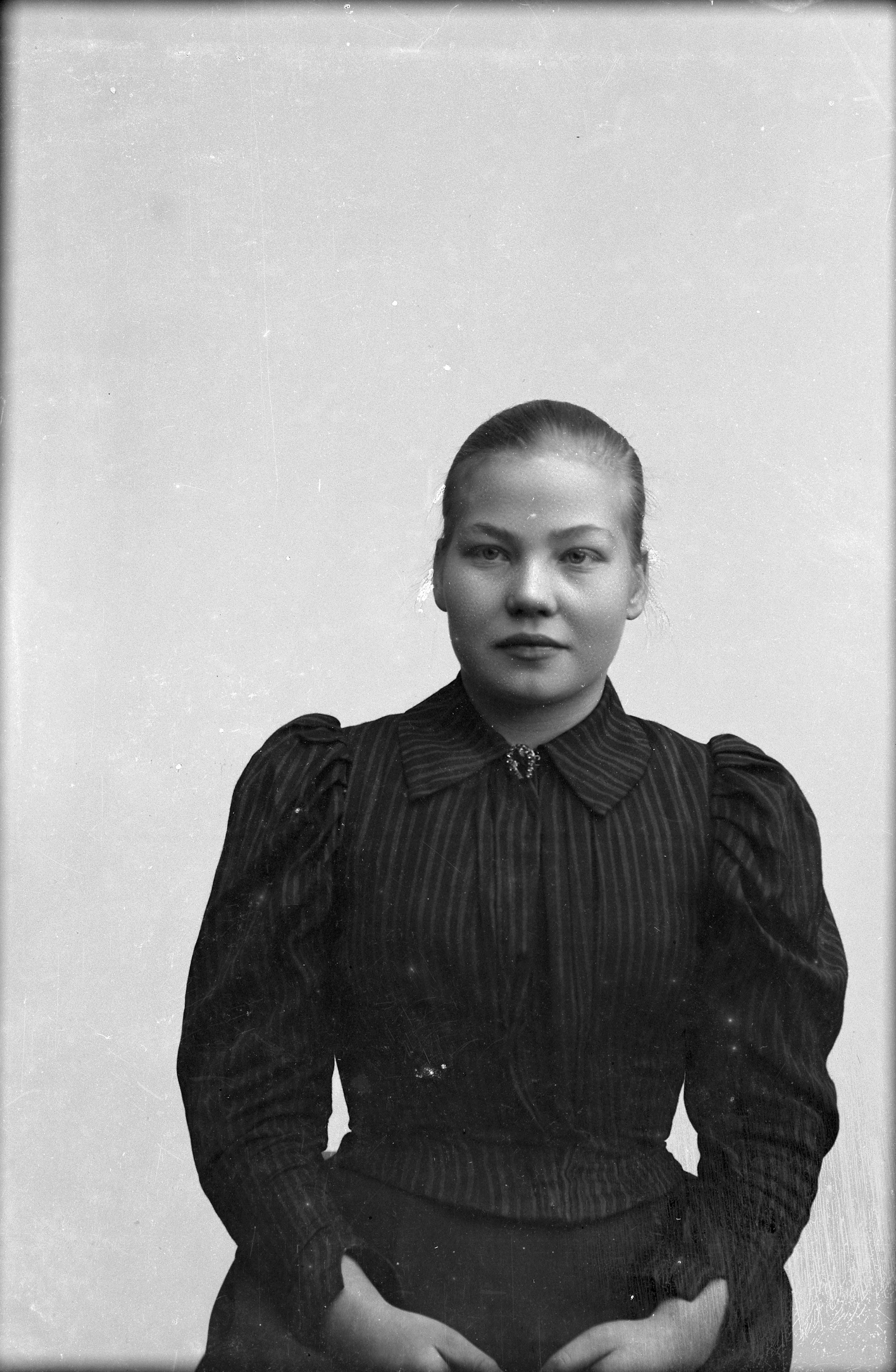 Beskrivning: Porträtt i halvfigur av Karolina Aspman.
