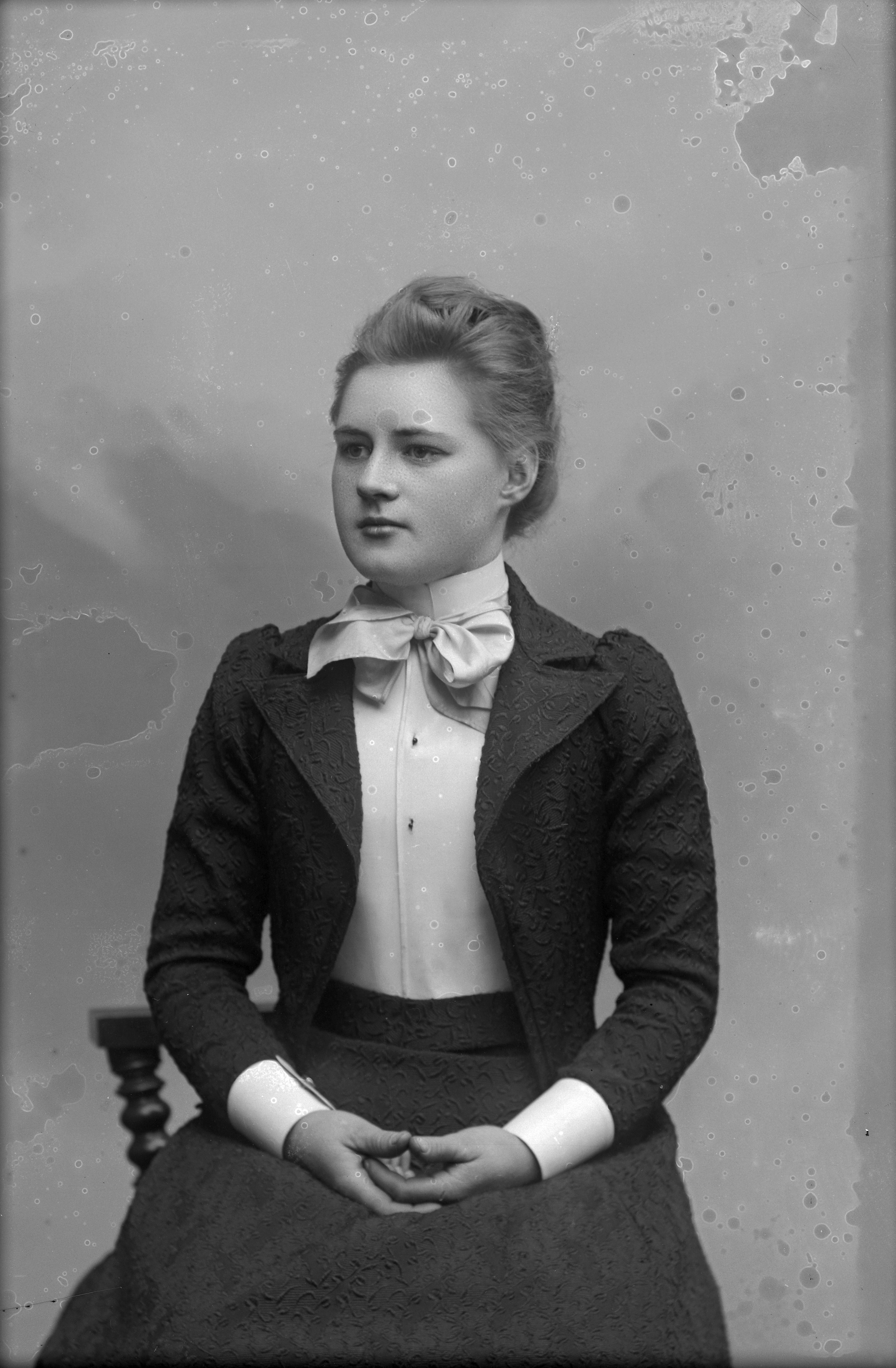 Beskrivning: Porträtt i halvfigur av Ellen Bingdahl.