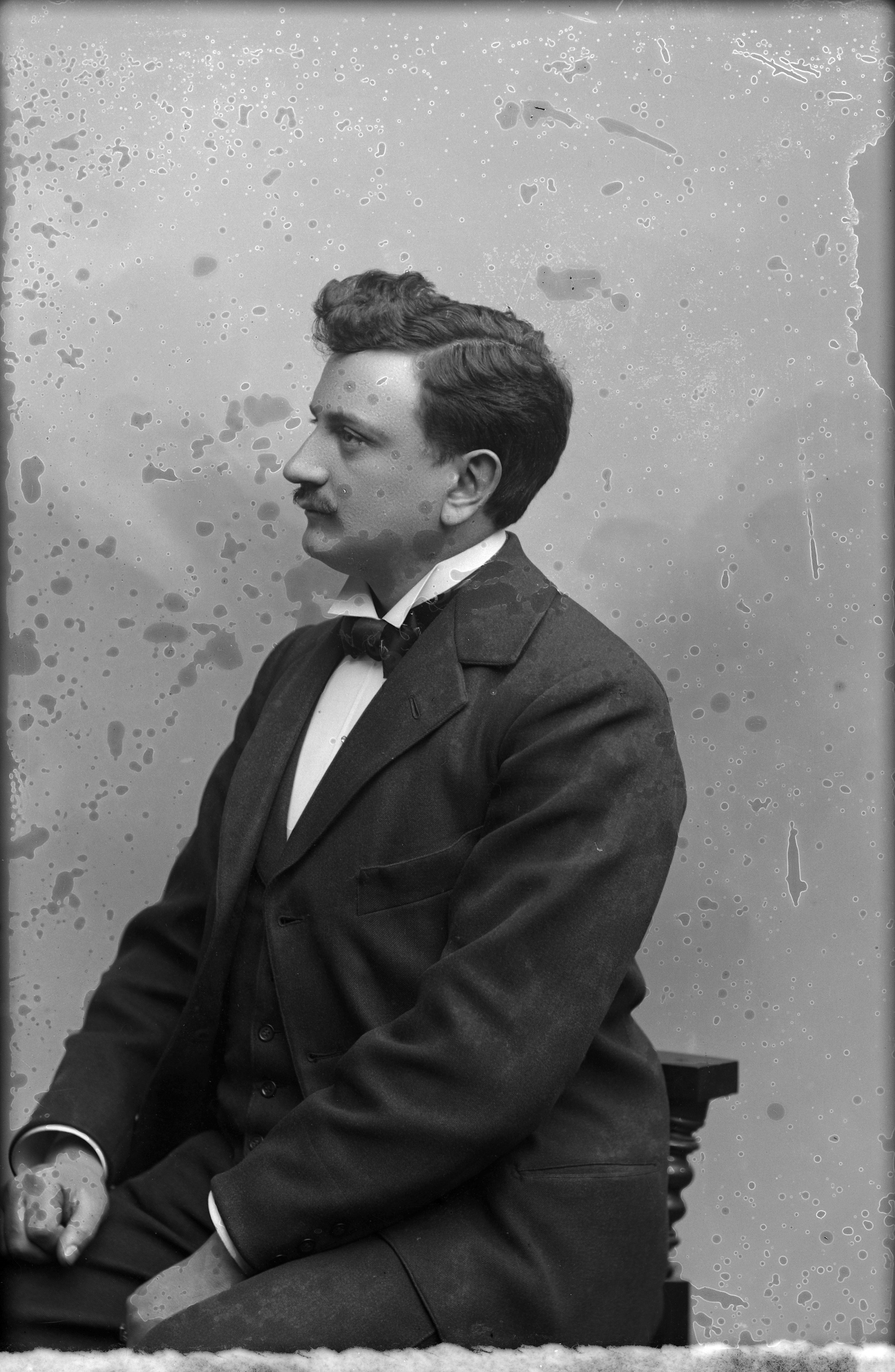 Porträtt i halvfigur, profil, av Ch. Persson.