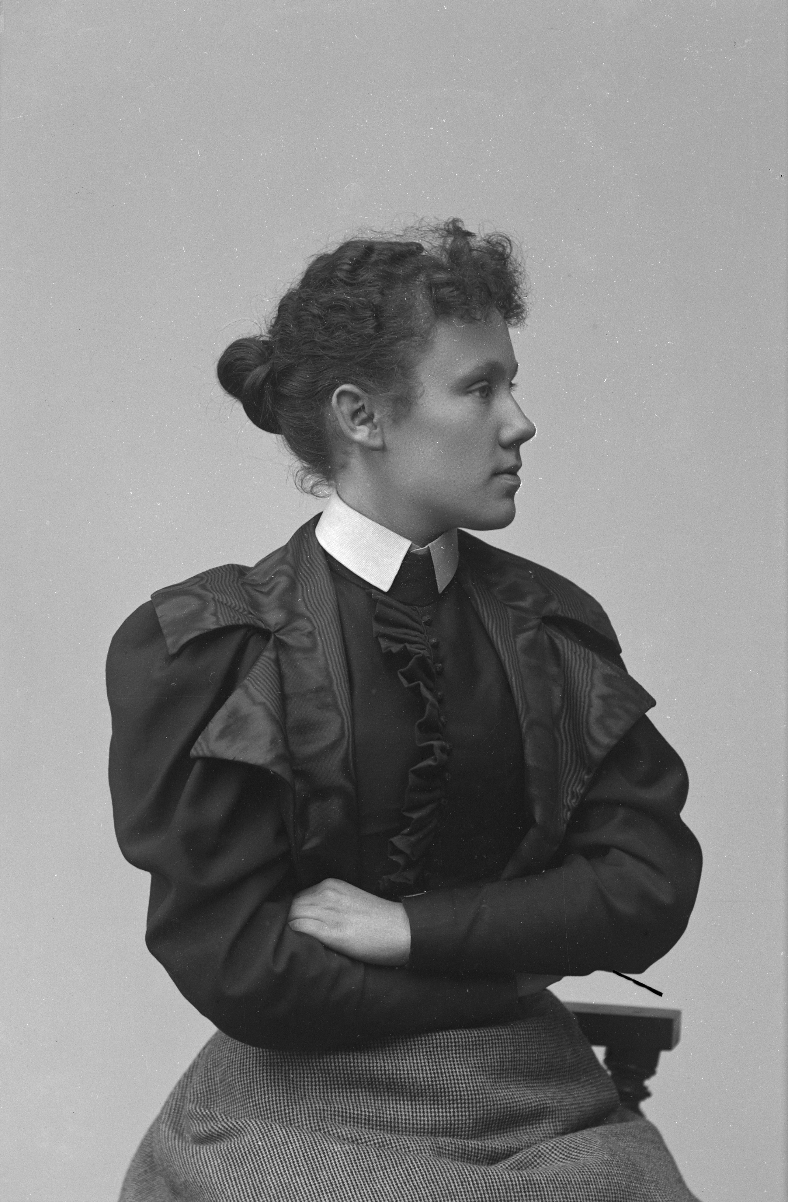 Porträtt i halvfigur av Bertha Paulsson, ansikte i profil.