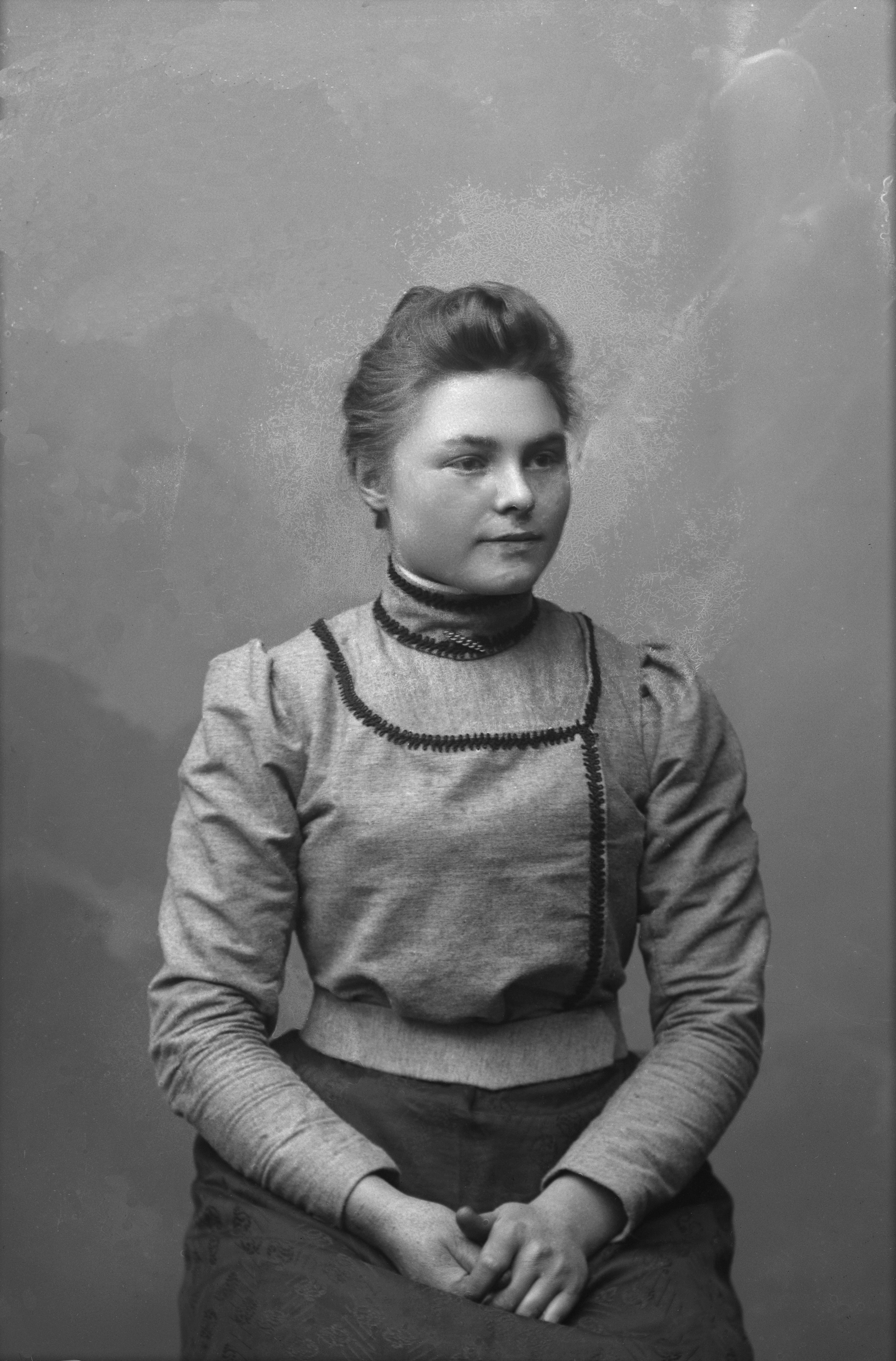 Beskrivning: Porträtt i halvfigur av Betty Björk.