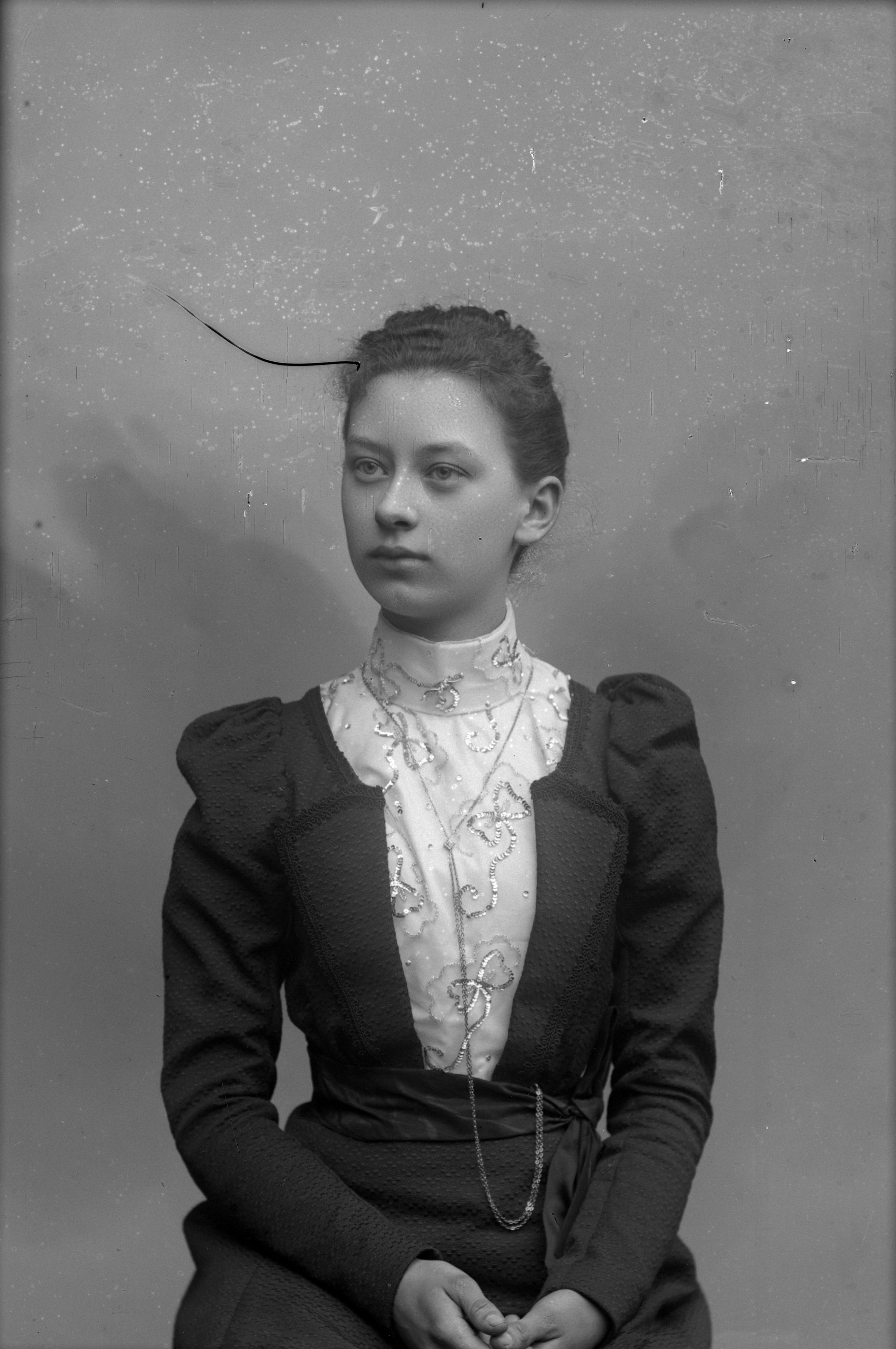 Beskrivning: Porträtt i halvfigur av Ellen Tornquist.