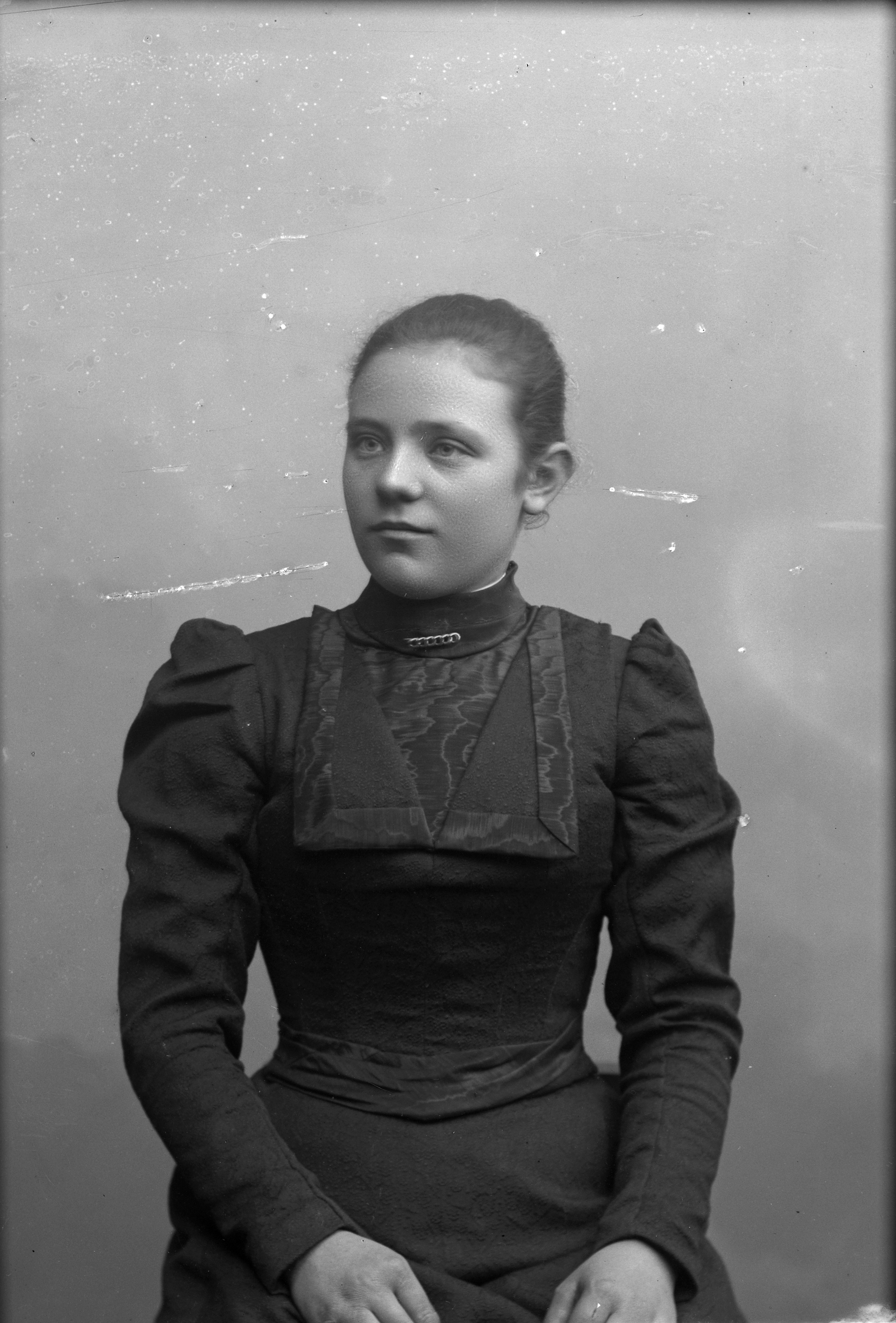 Beskrivning: Porträtt i halvfigur av Johanna Olsson.