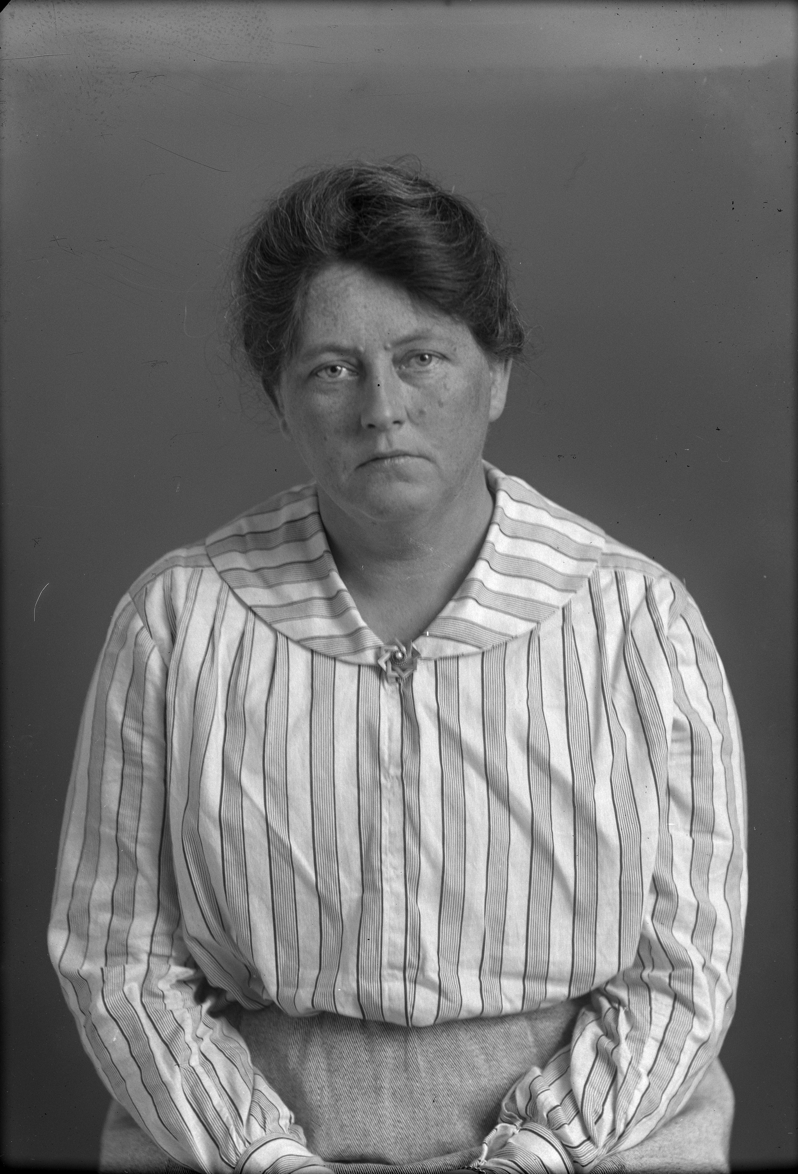 Beskrivning: Porträtt i halvfigur av fru Åregård.