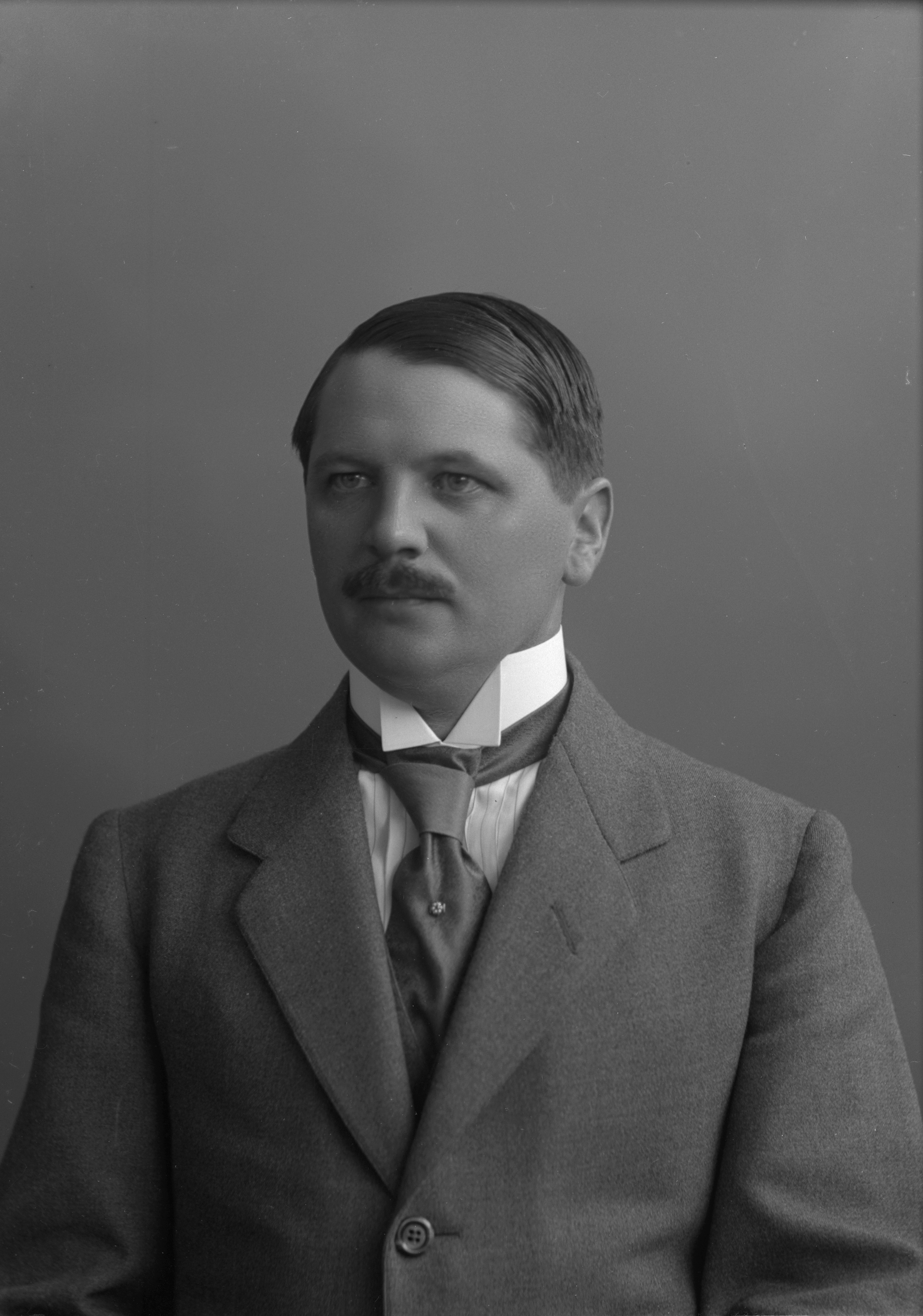 Beskrivning: Porträtt i halvfigur av veterinär B. Stenmark.