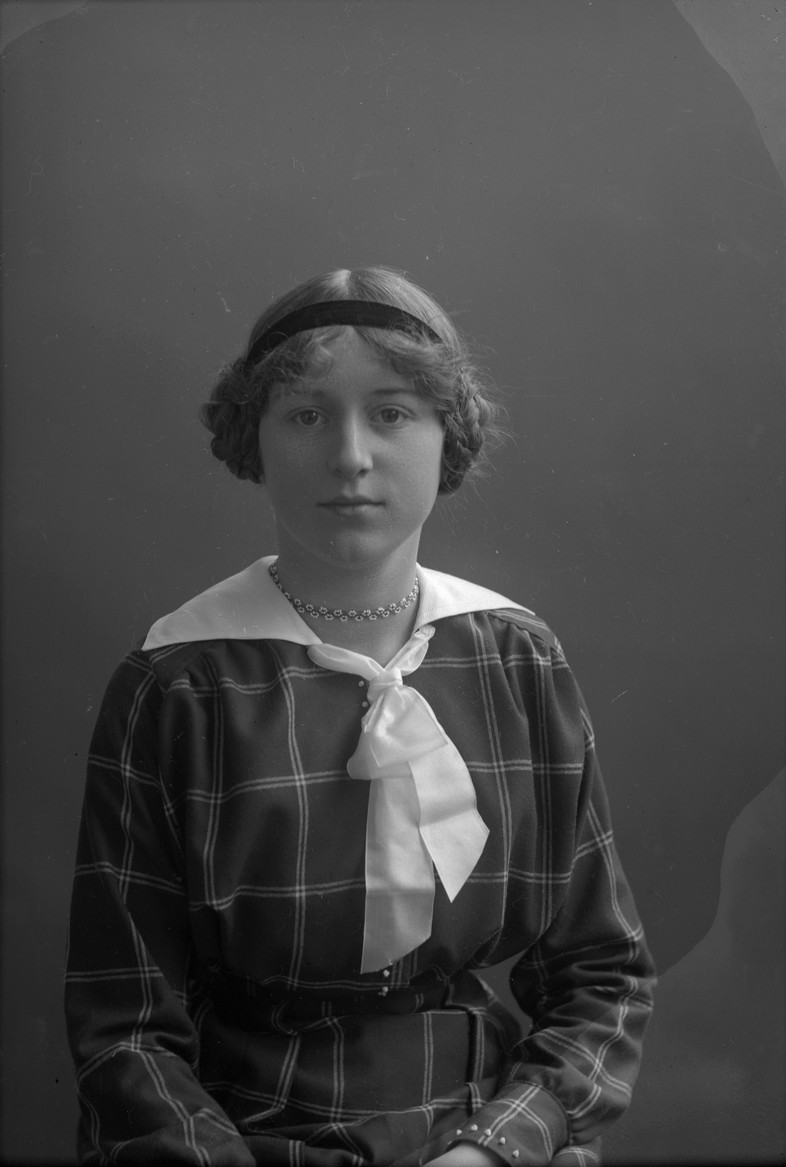 Beskrivning: Porträtt i halvfigur av fröken Gislander.