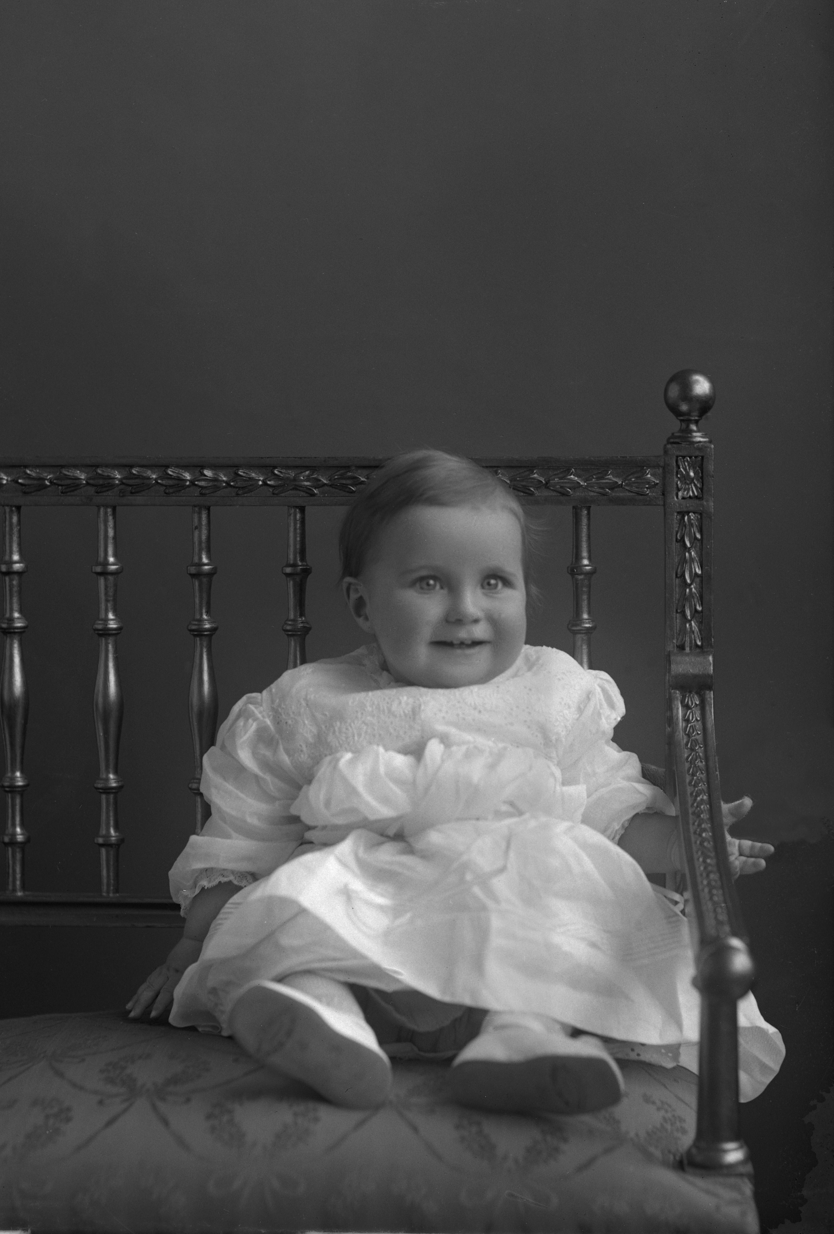 Porträtt i helfigur av herr Bergman barn, sittande i stol (i nyklassicism).