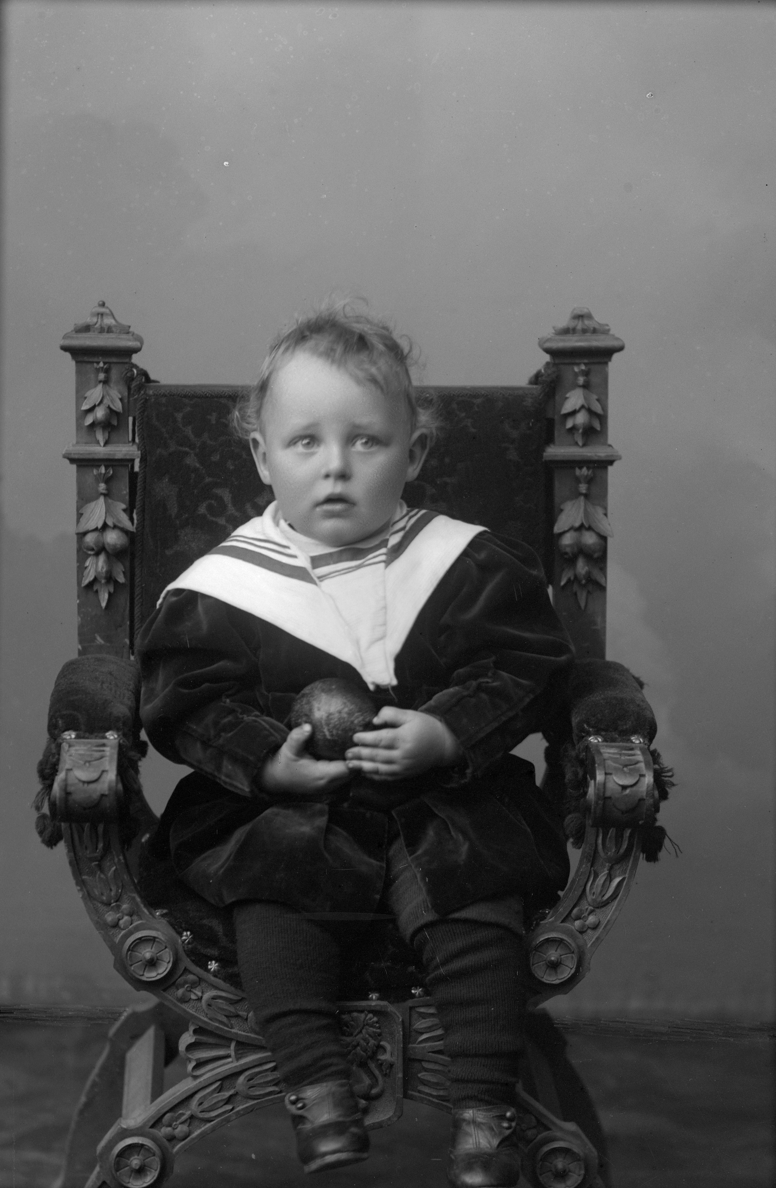 Porträtt i helfigur av Olssons sion, iklädd sjömanskostym.