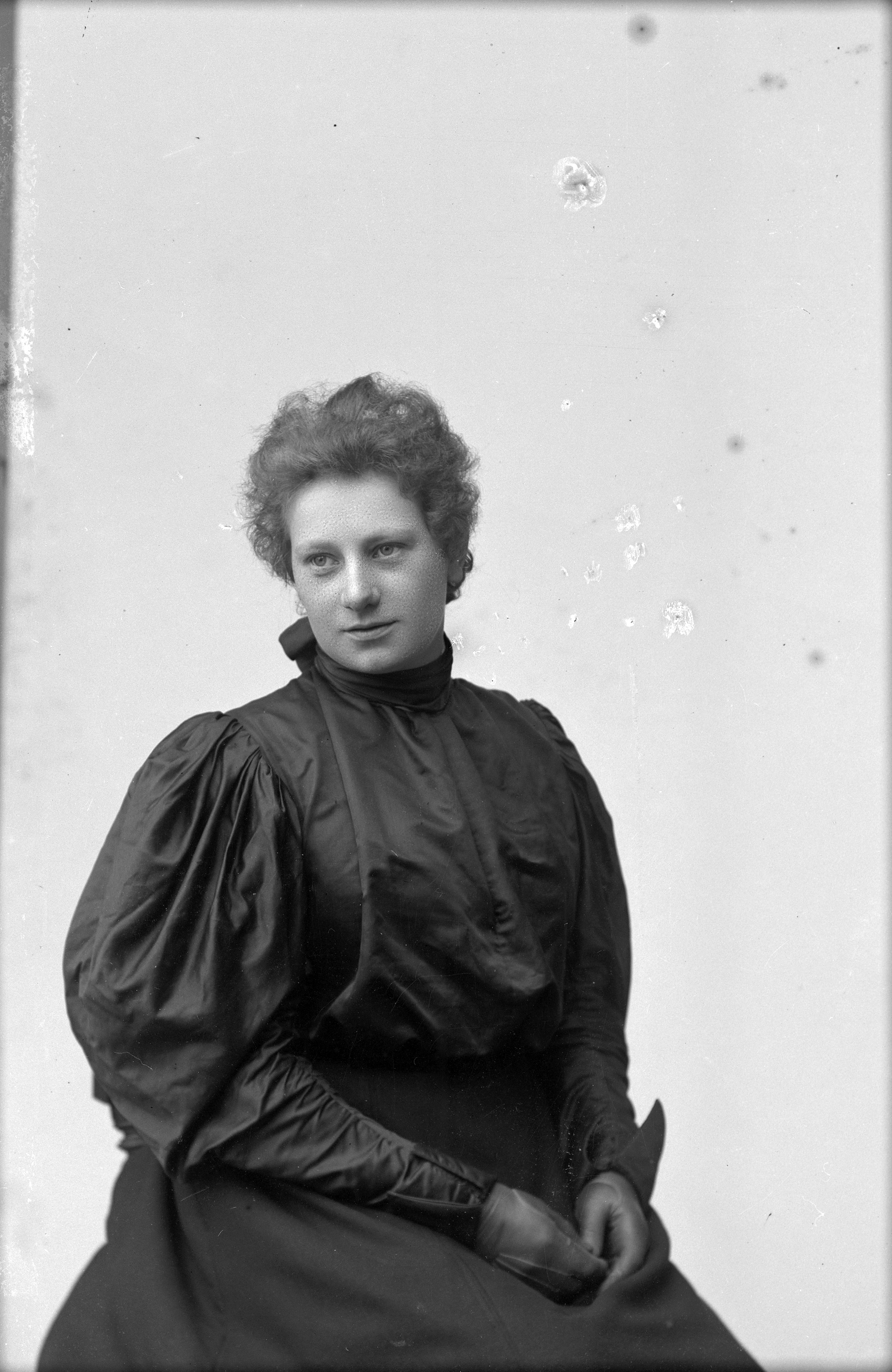 Beskrivning: Porträtt i halvfigur av fröken Adamsson.