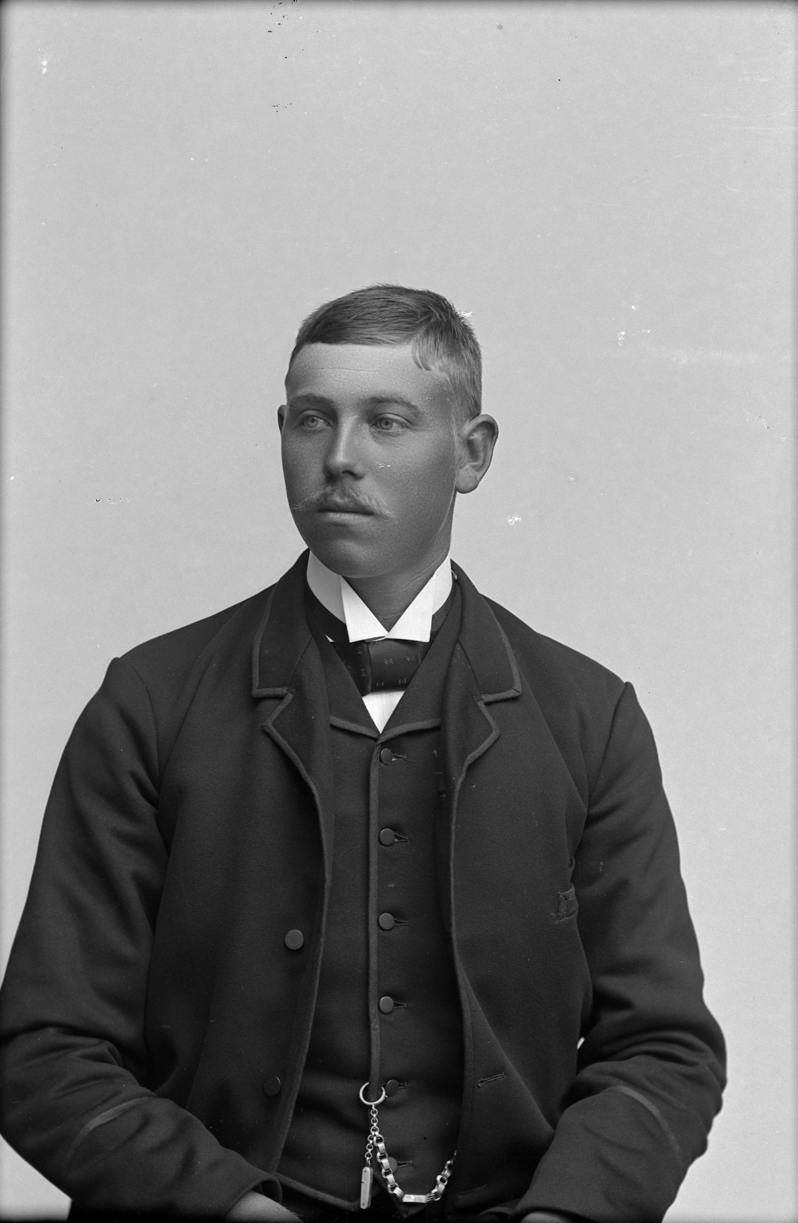 Beskrivning: Porträtt i halvfigur av Ola Olsson.