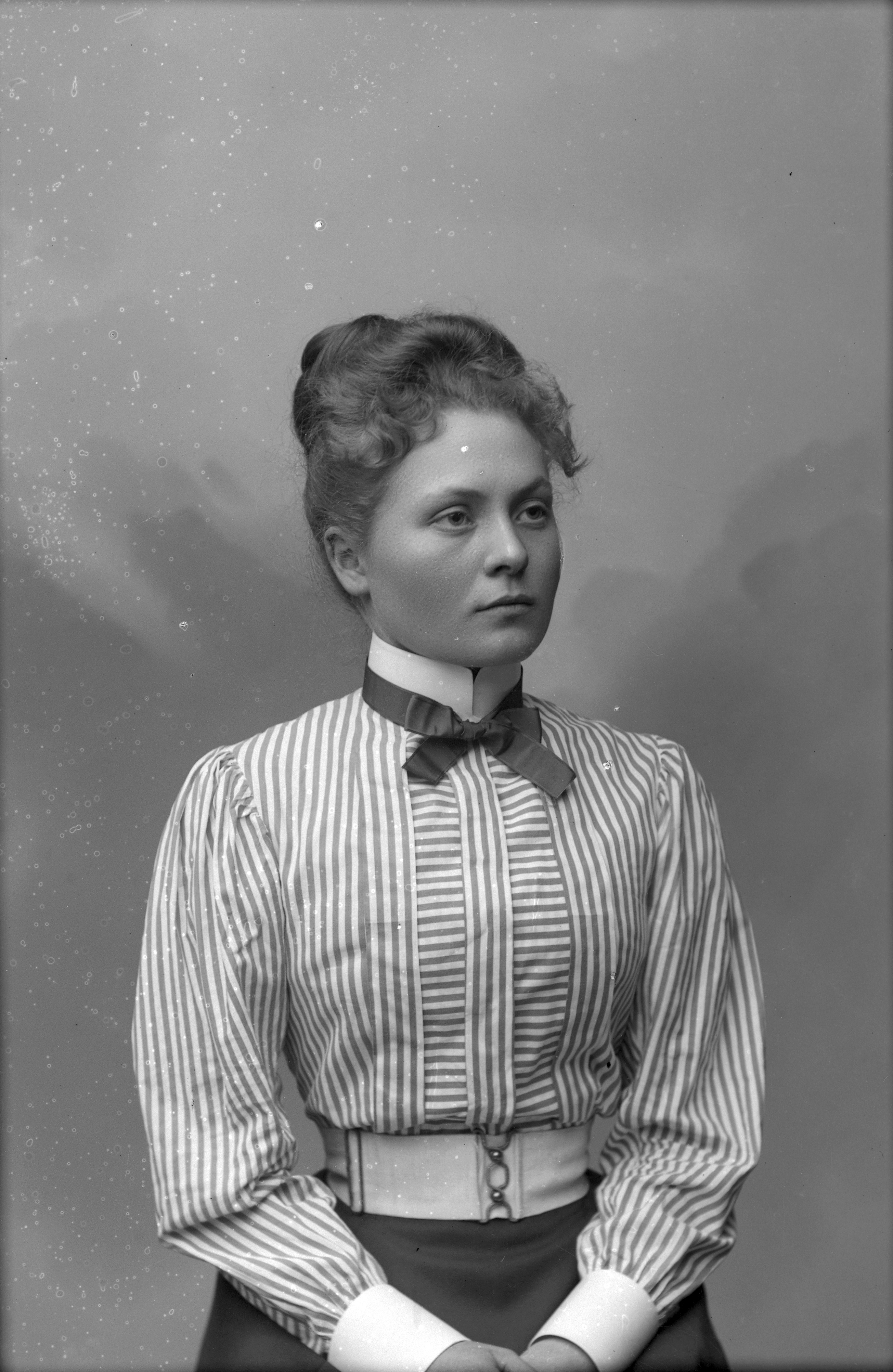 Beskrivning: Porträtt i halvfigur av Hilda Håkansson.