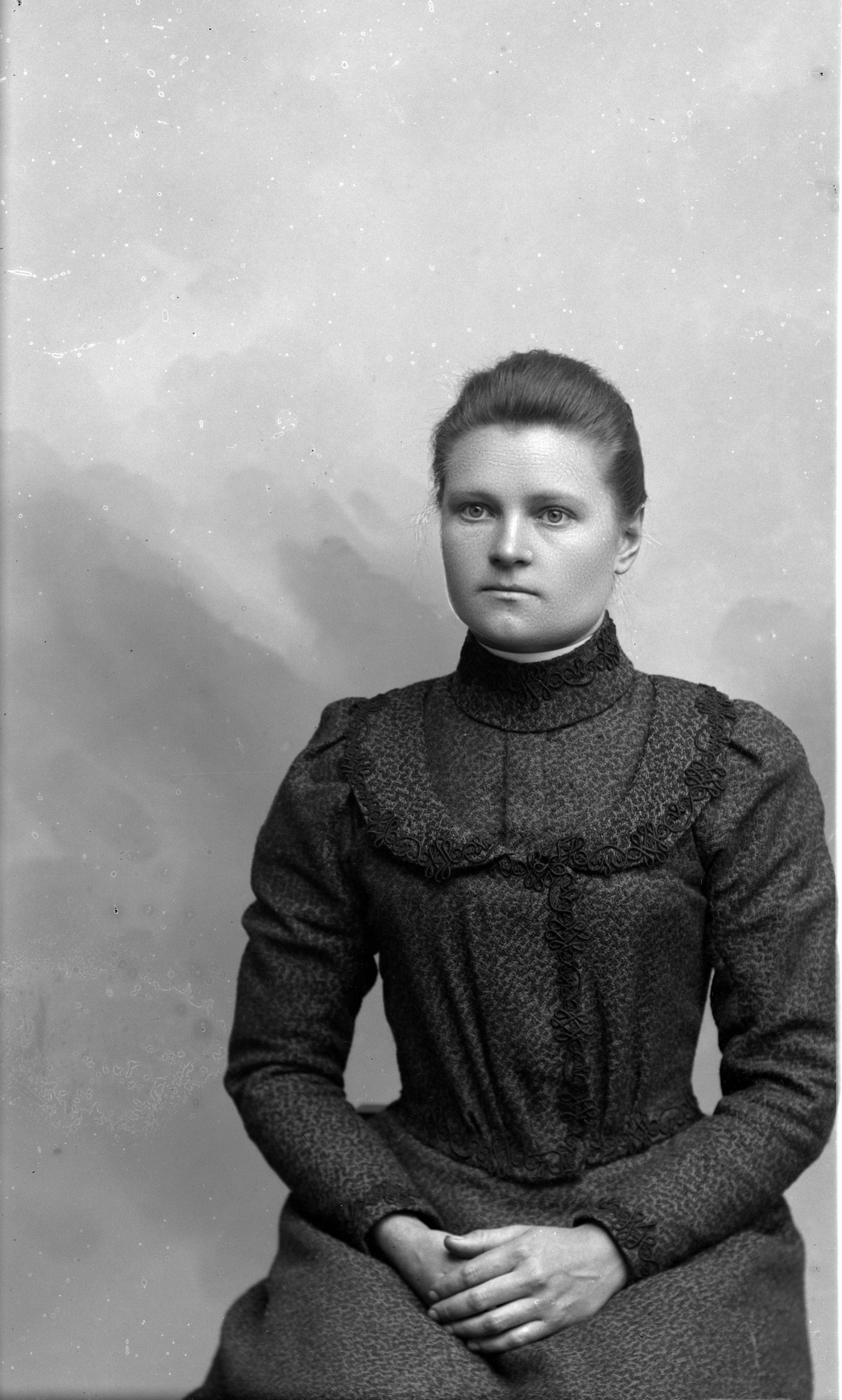 Beskrivning: Porträtt i helfigur av Hilda Göransson.