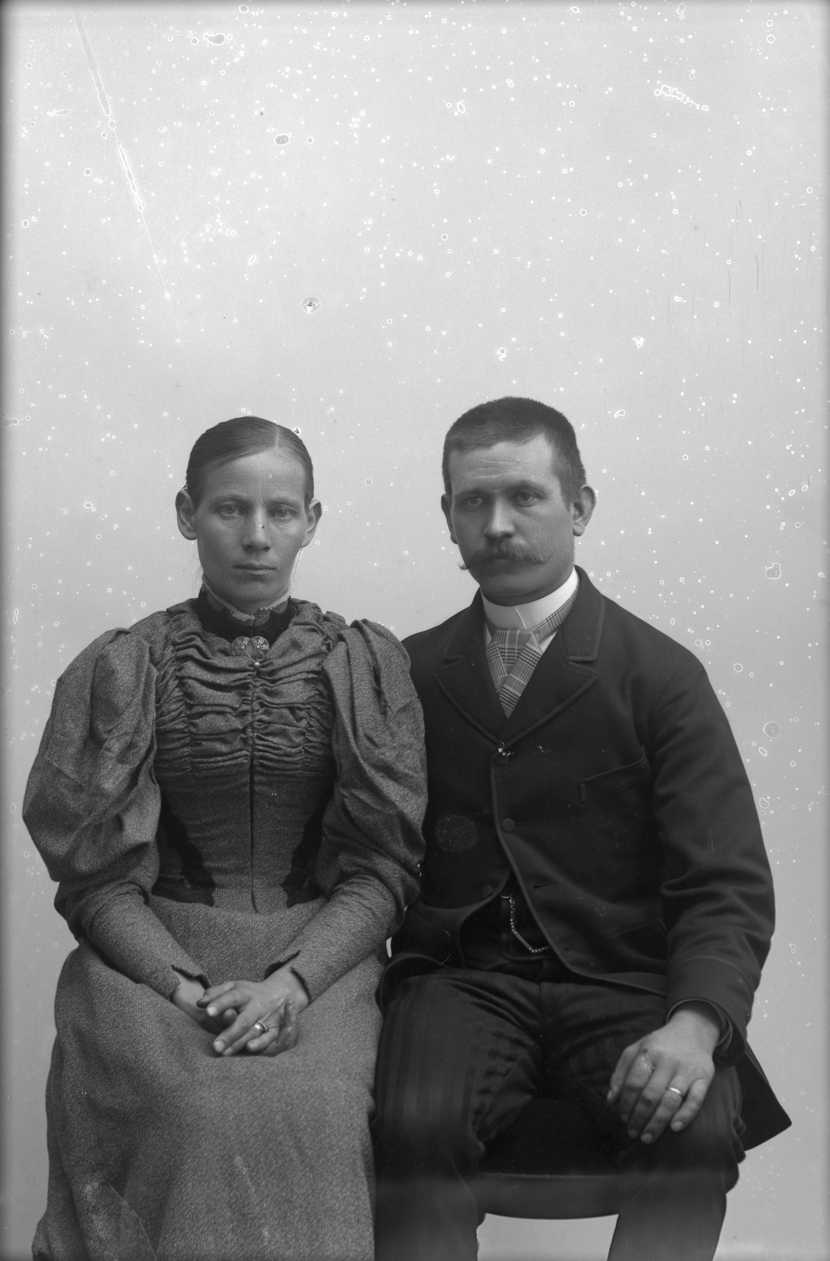 Beskrivning: Porträtt i helfigur av Daniel Schmidt med fru.
