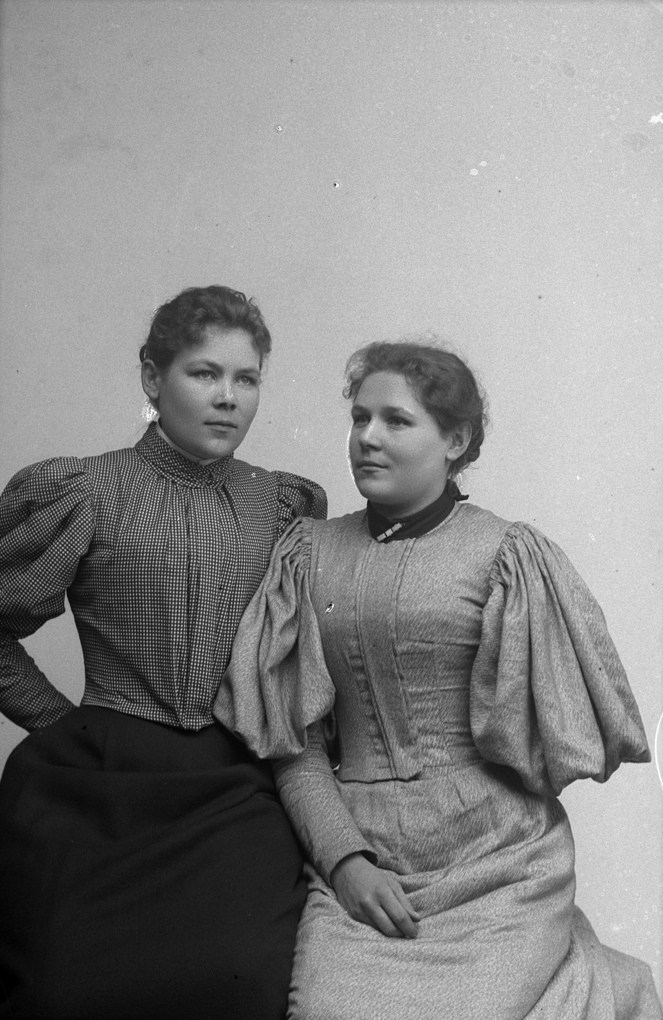 Porträtt i helfigur av Mathilda Olsson med okänd kvinna, möjligen syster.