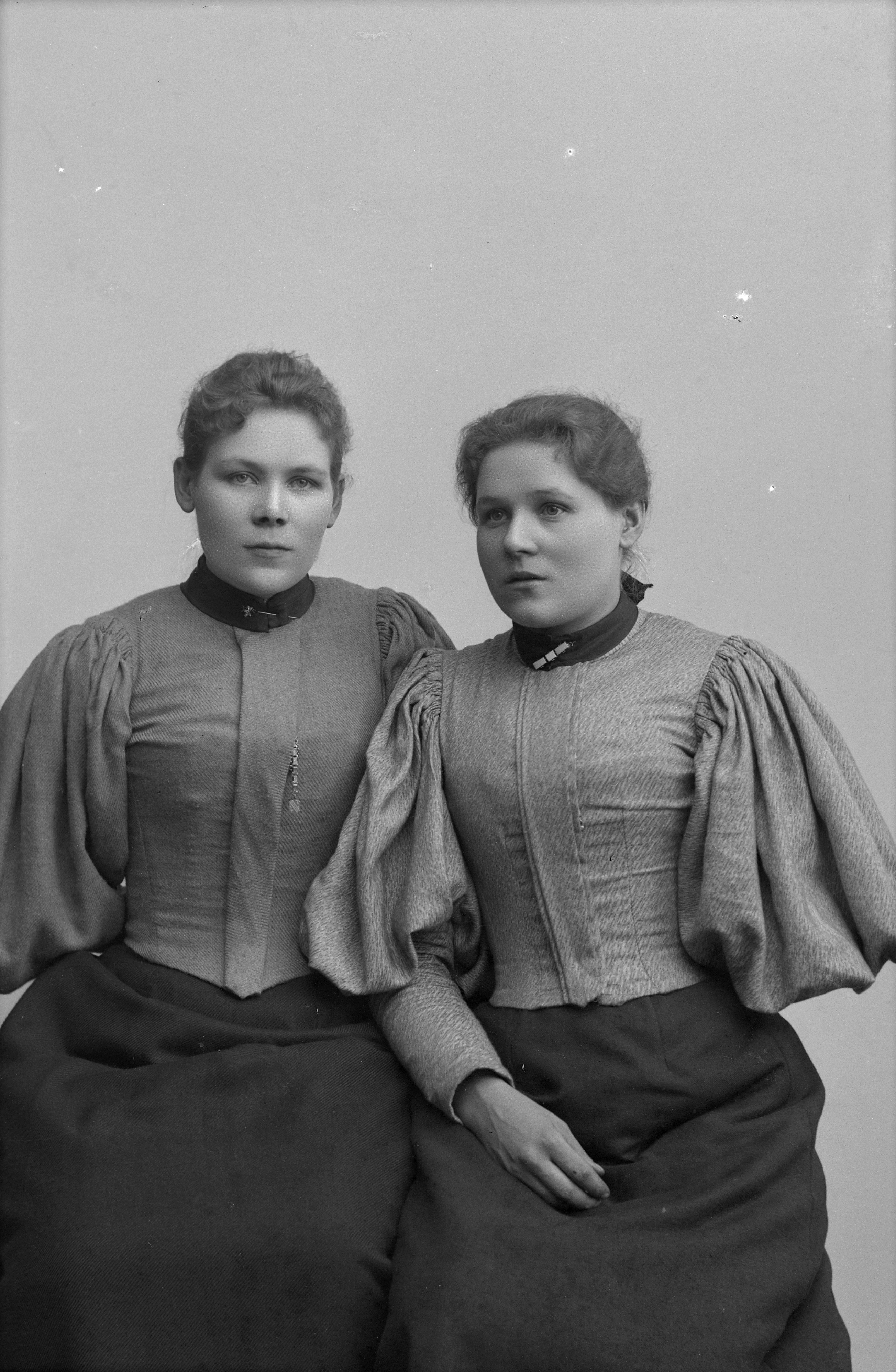 Porträtt i helfigur av Mathilda Olsson med okänd kvinna, möjligen syster.