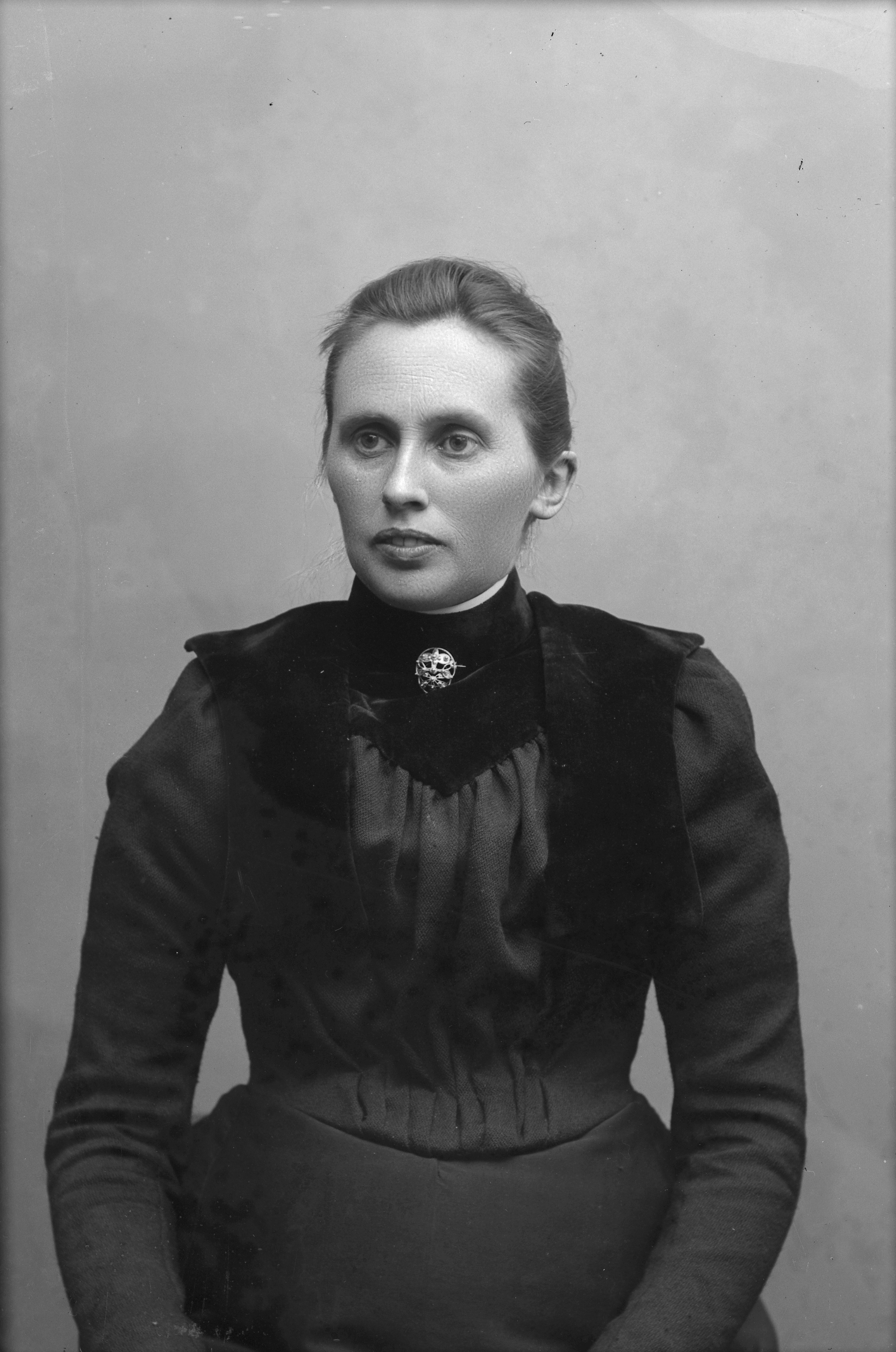 Beskrivning: Porträtt i halvfigur av fru Larsson.