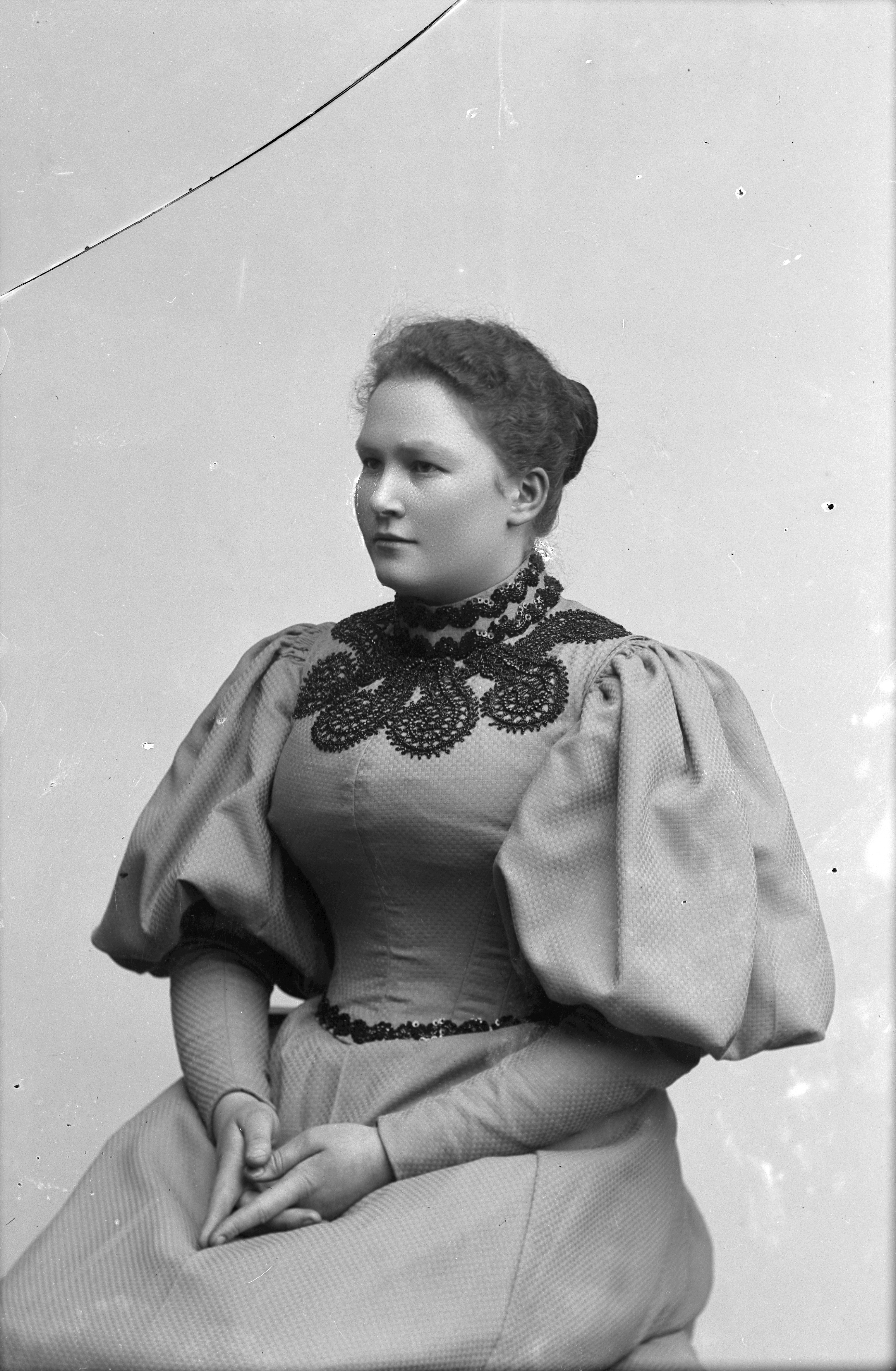 Beskrivning: Porträtt i halvfigur av Albertina Lundin.