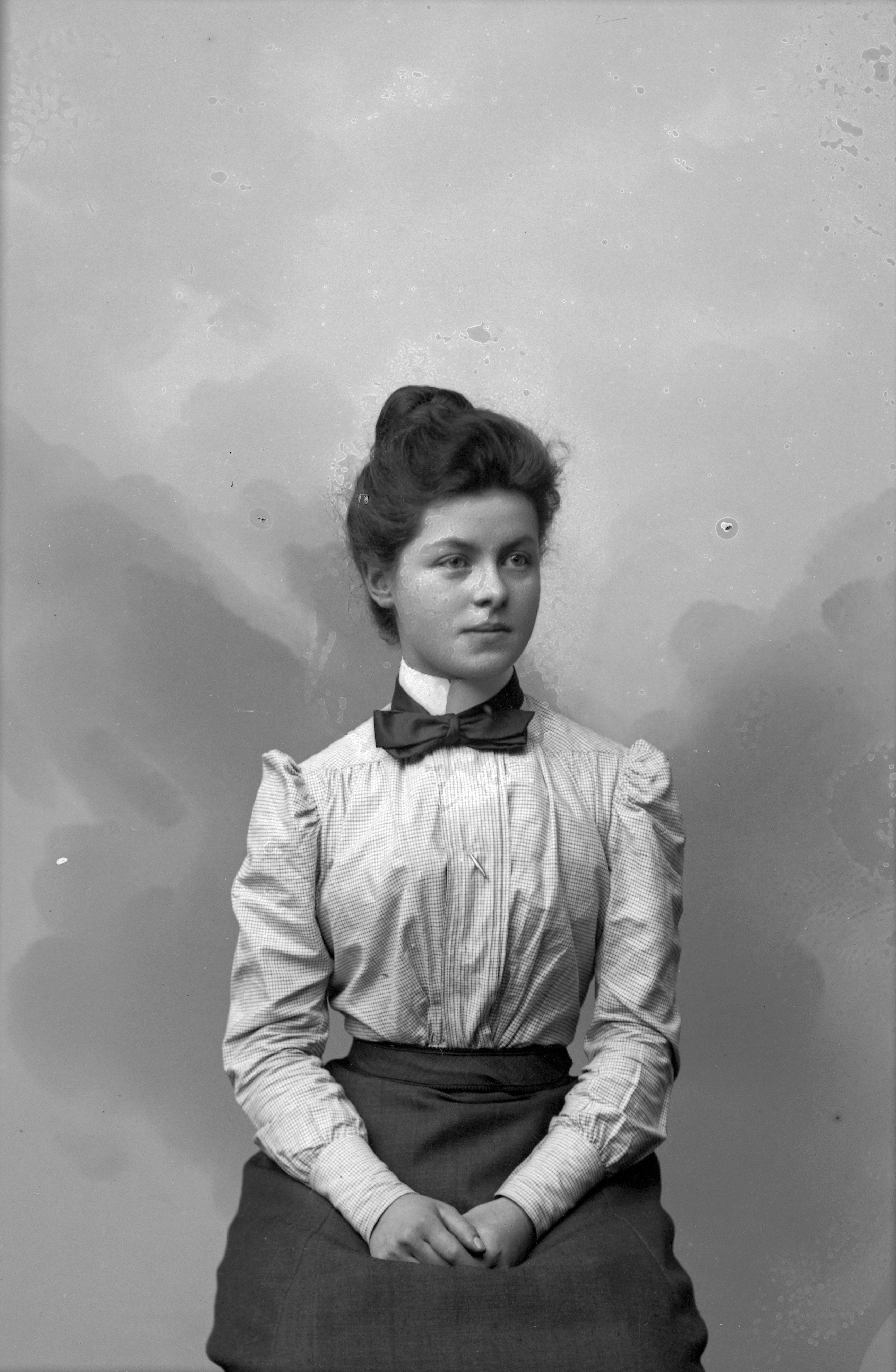 Beskrivning: Porträtt i halvfigur av Elsa Palm.