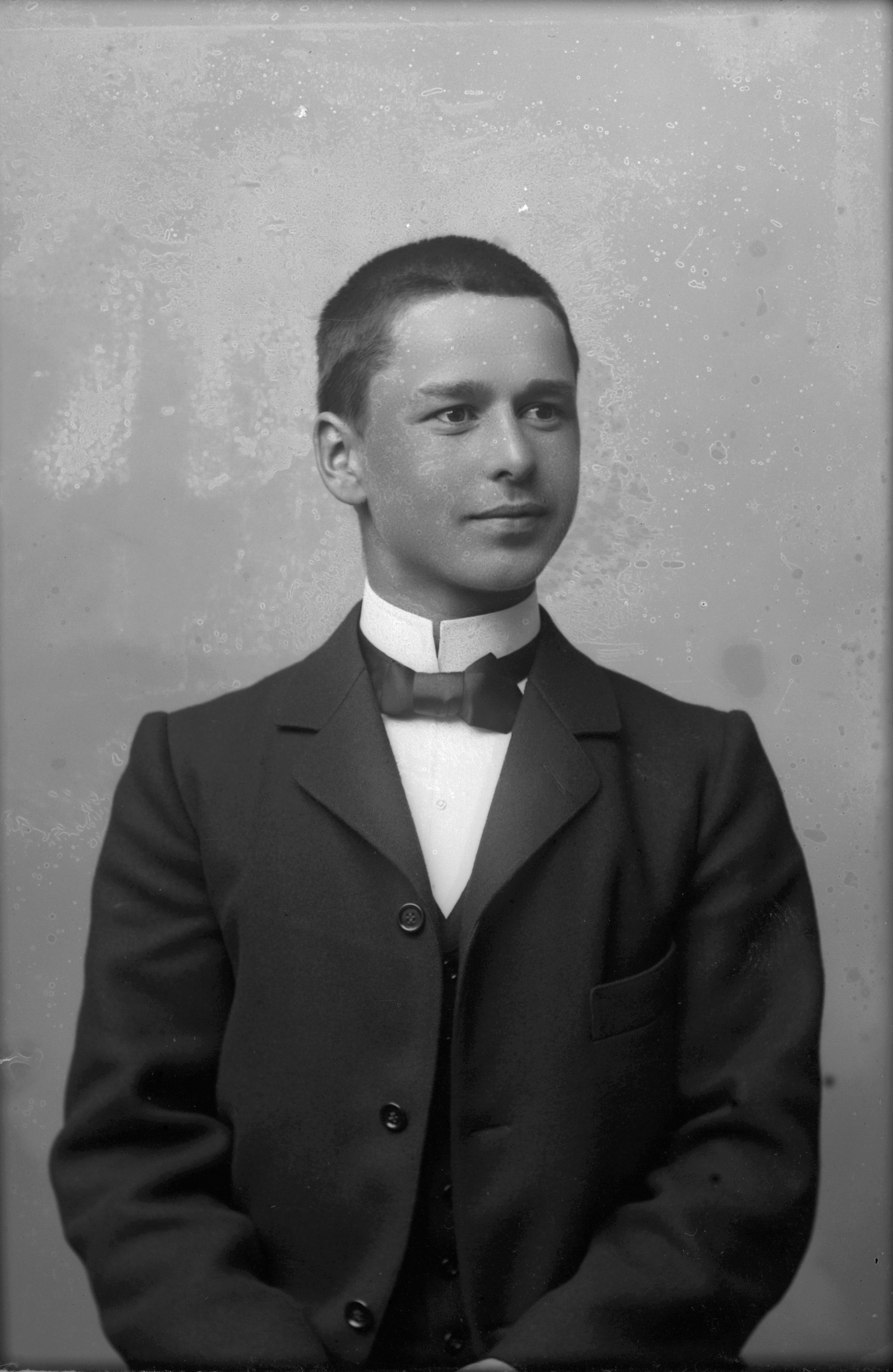 Beskrivning: Porträtt i halvfigur av O. Gädda.