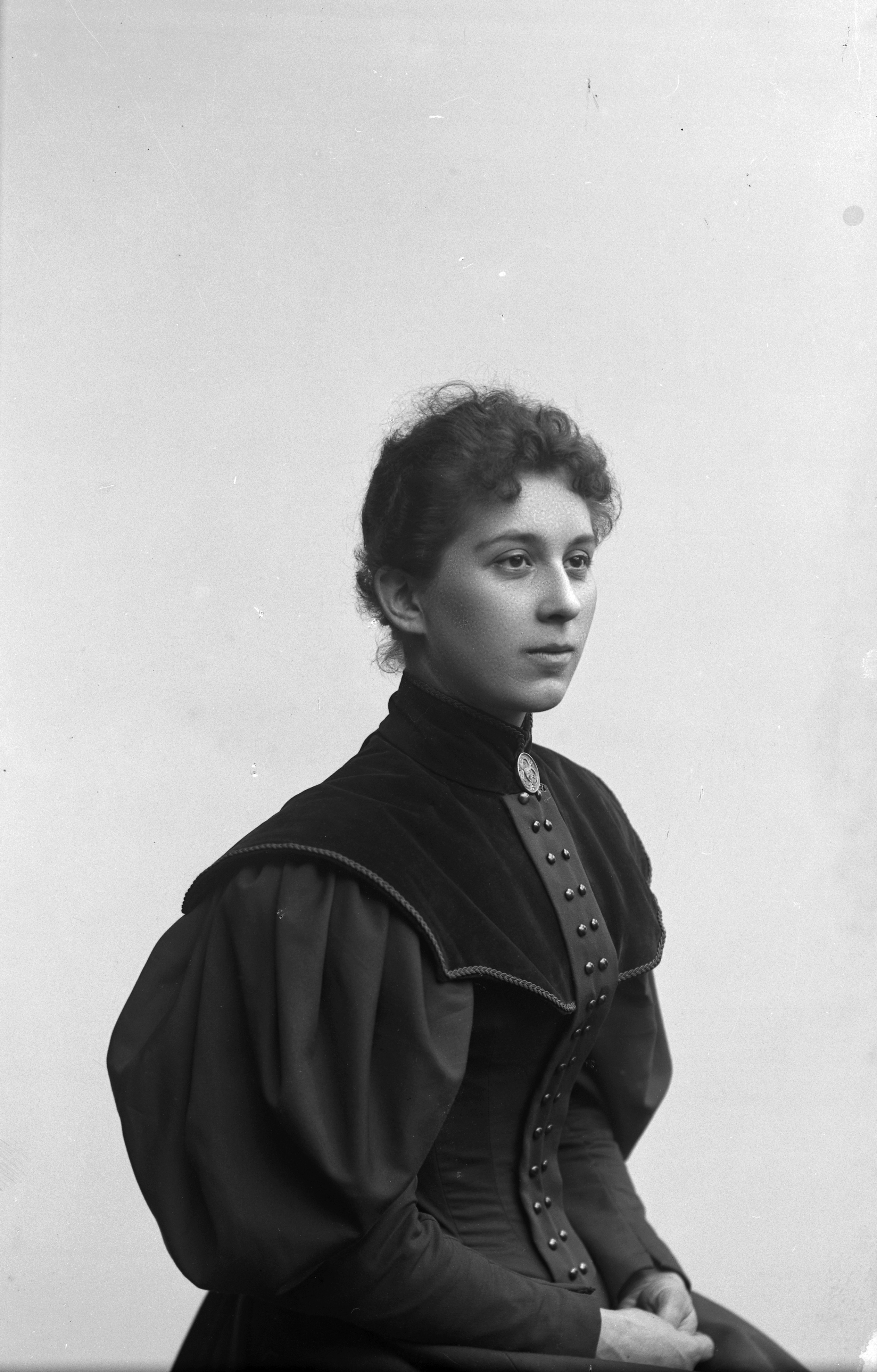Beskrivning: Porträtt i halvfigur av Ida Storm.