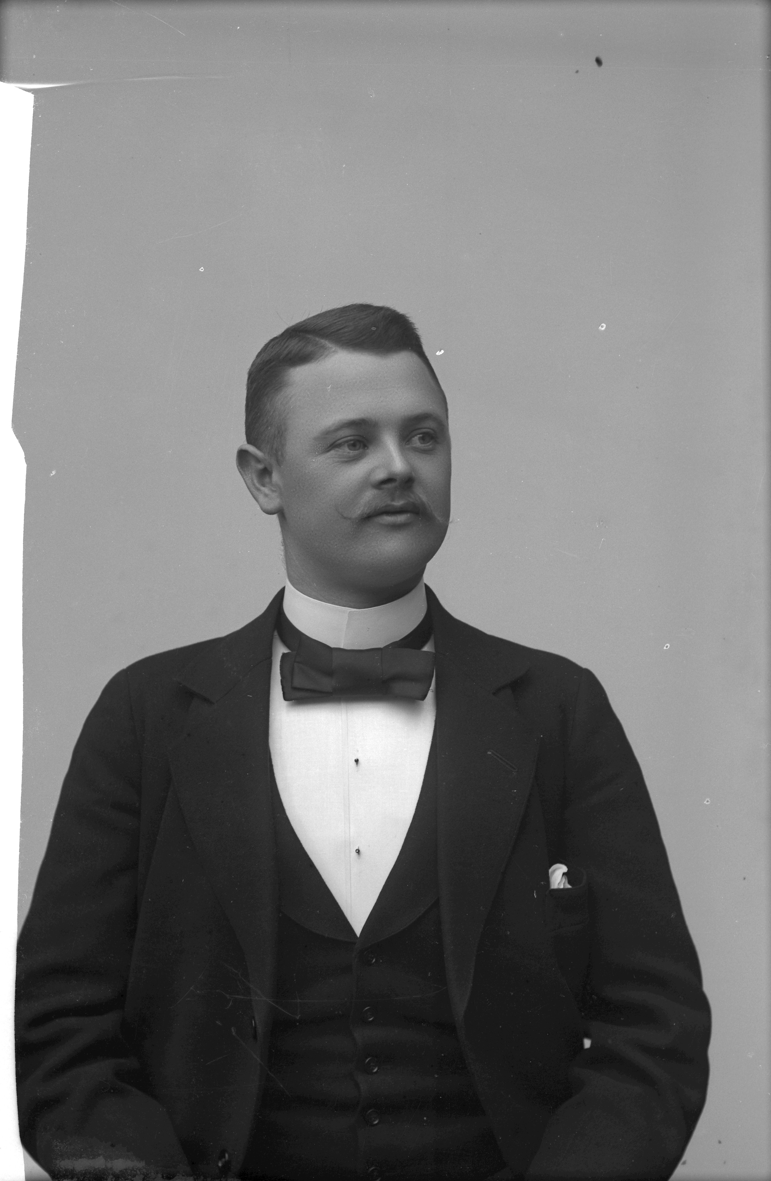 Beskrivning: Porträtt i halvfigur av L. Larsson.