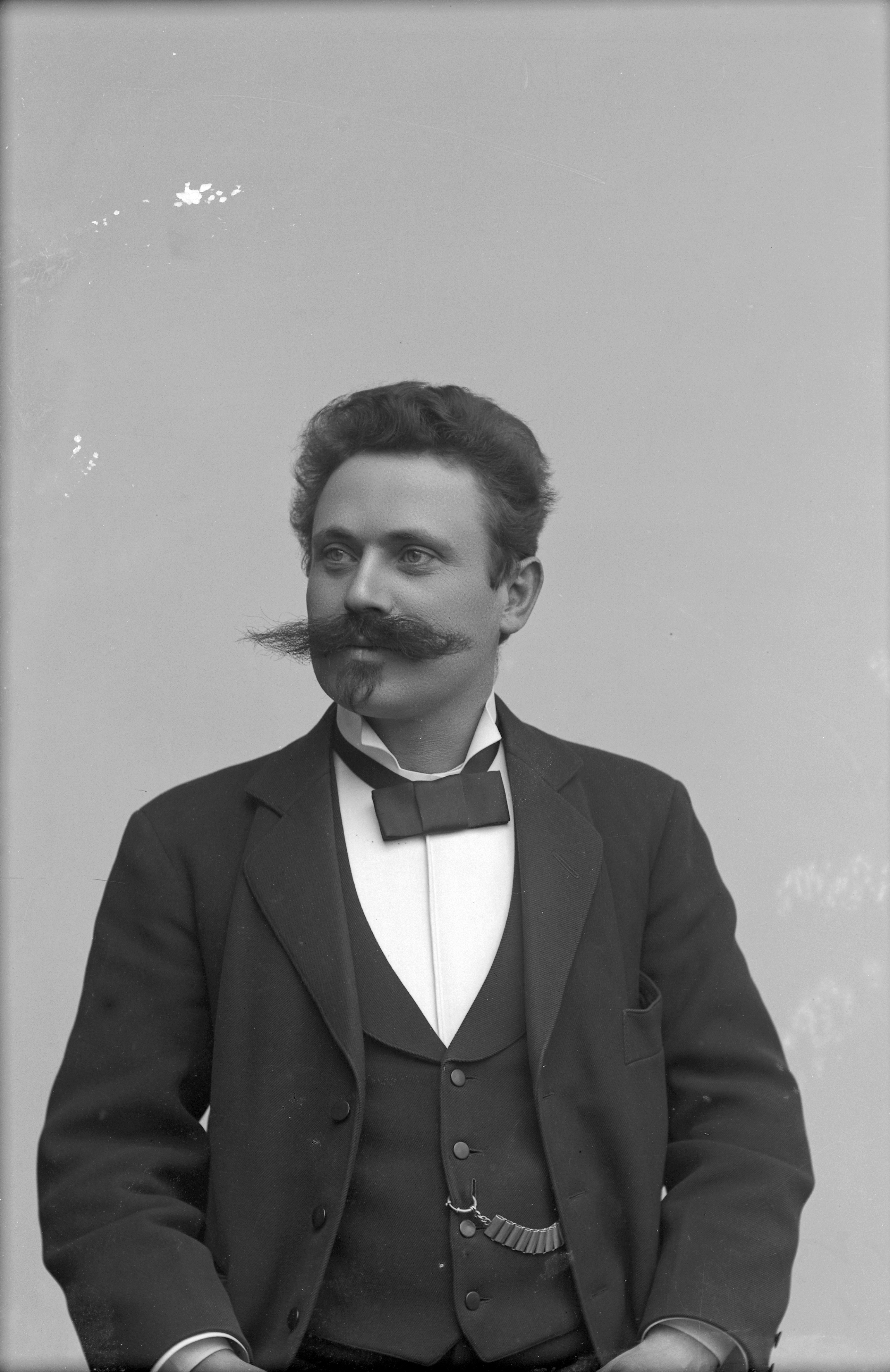 Beskrivning: Porträtt i halvfigur av Oscar Möller.