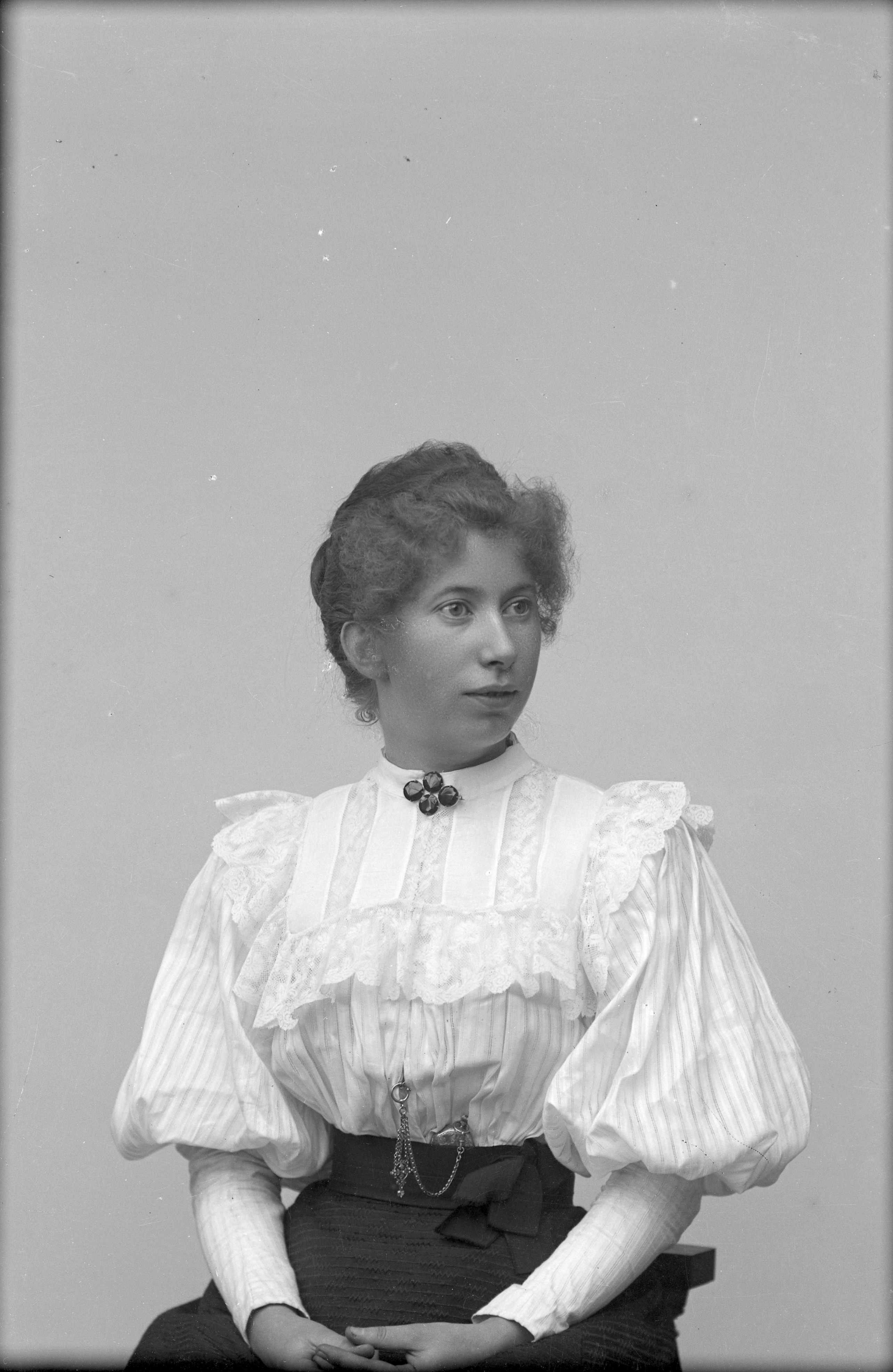 Beskrivning: Porträtt i halvfigur av Tea Nilsson.