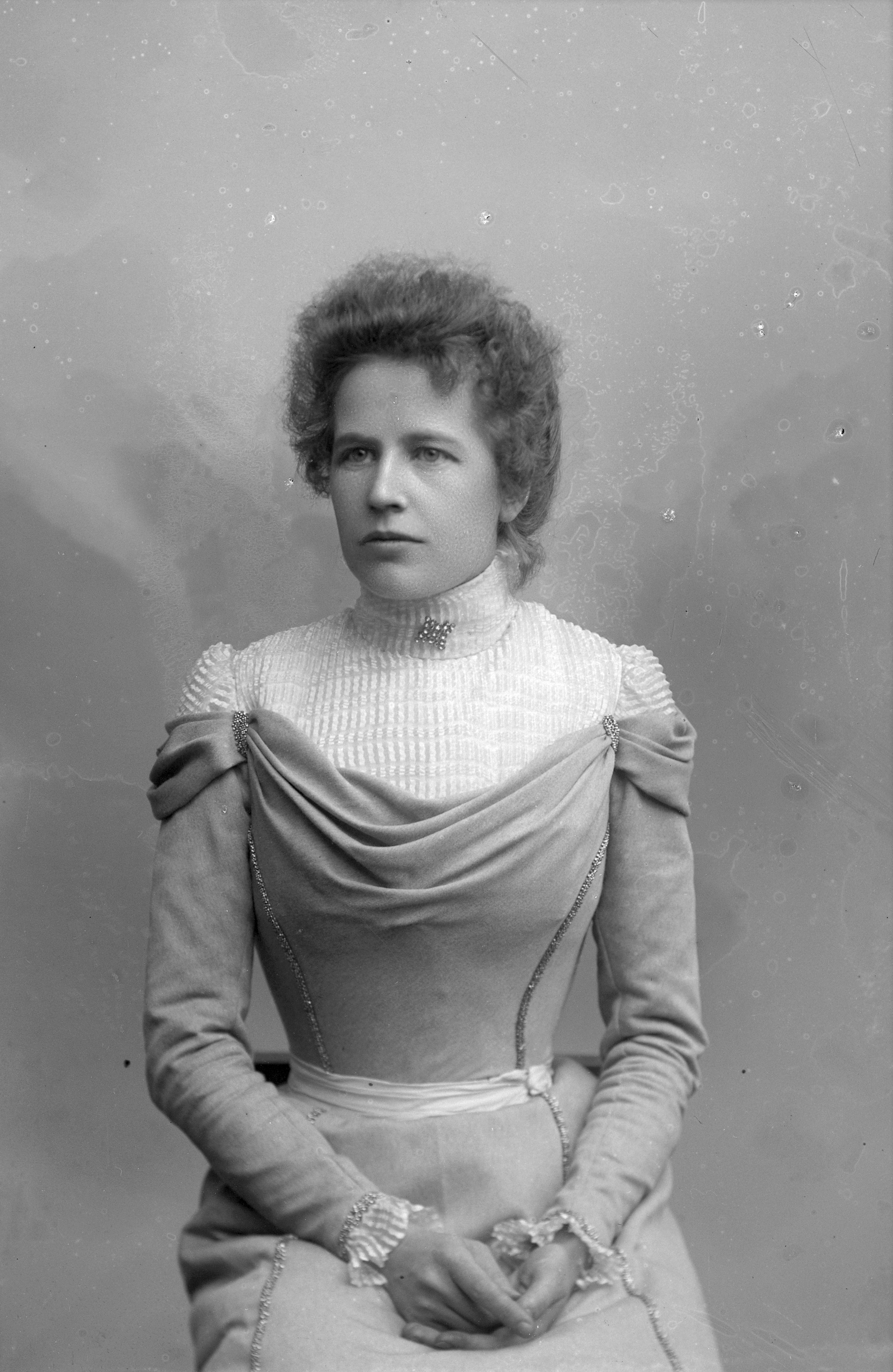Beskrivning: Porträtt i halvfigur av Ida Carlin.