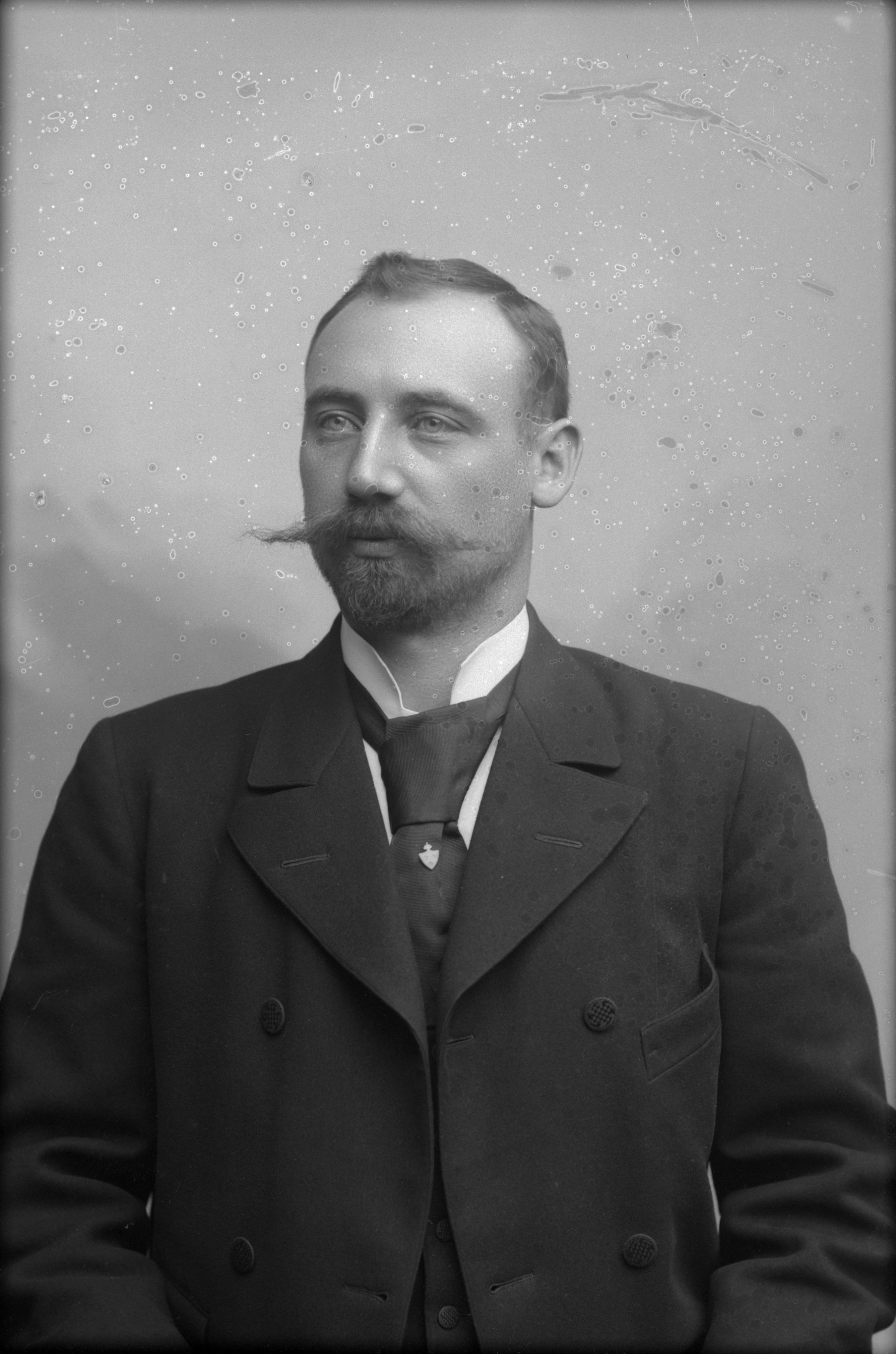 Beskrivning: Porträtt i halvfigur av A. Rohlsson.