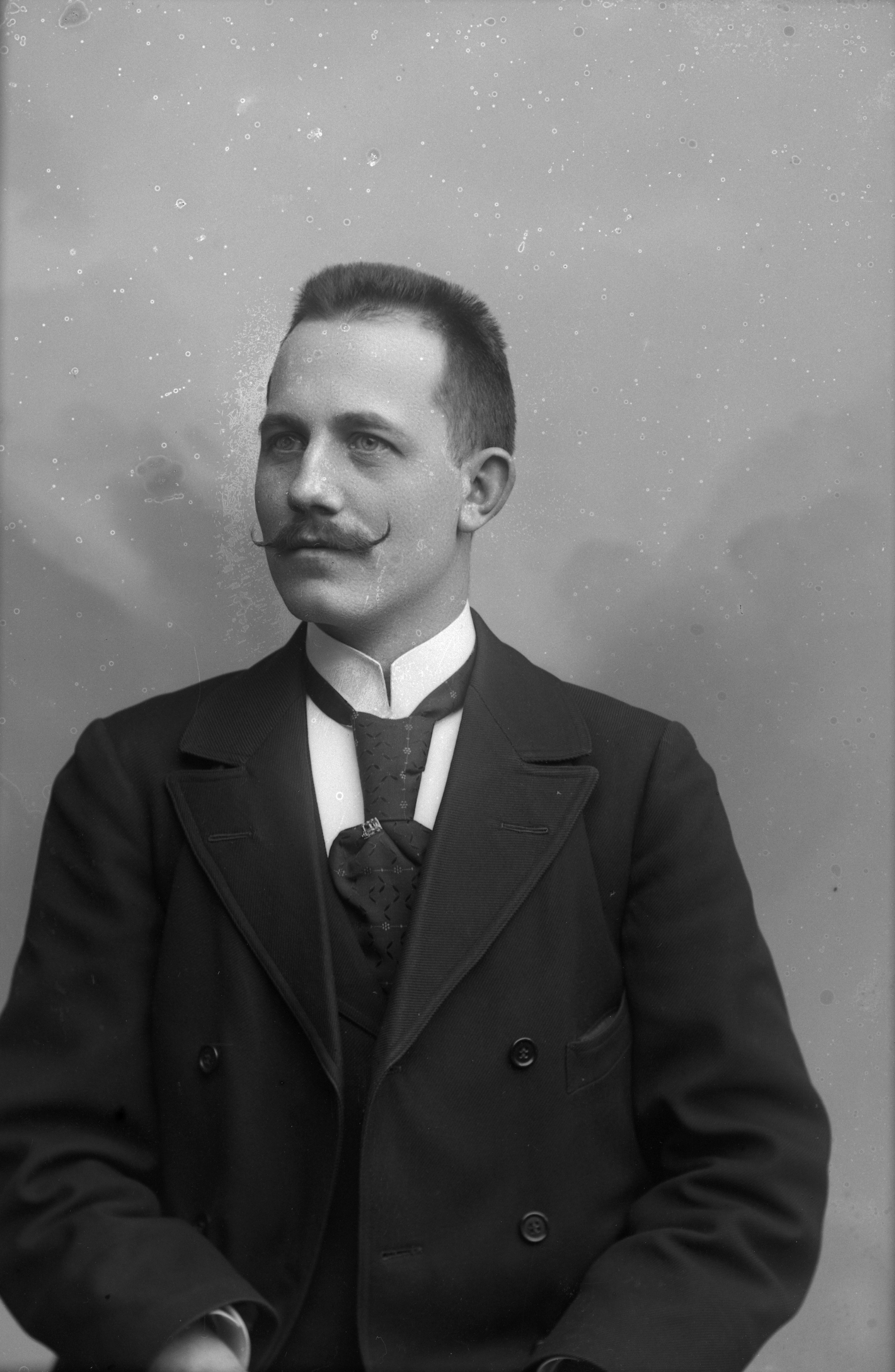 Beskrivning: Porträtt i halvfigur av C. Q. Karlsson.