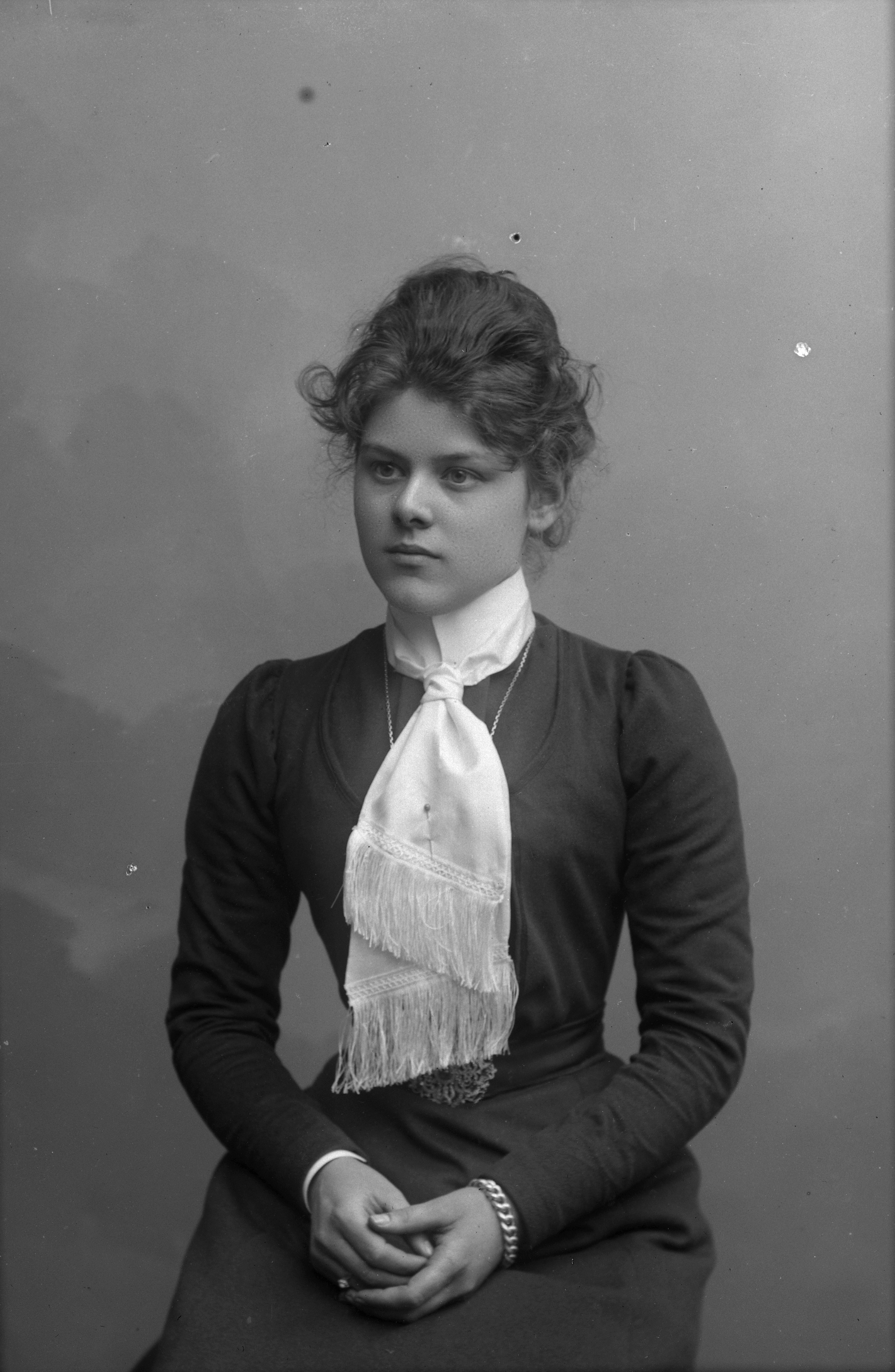 Beskrivning: Porträtt i halvfigur av Edith Eksten.