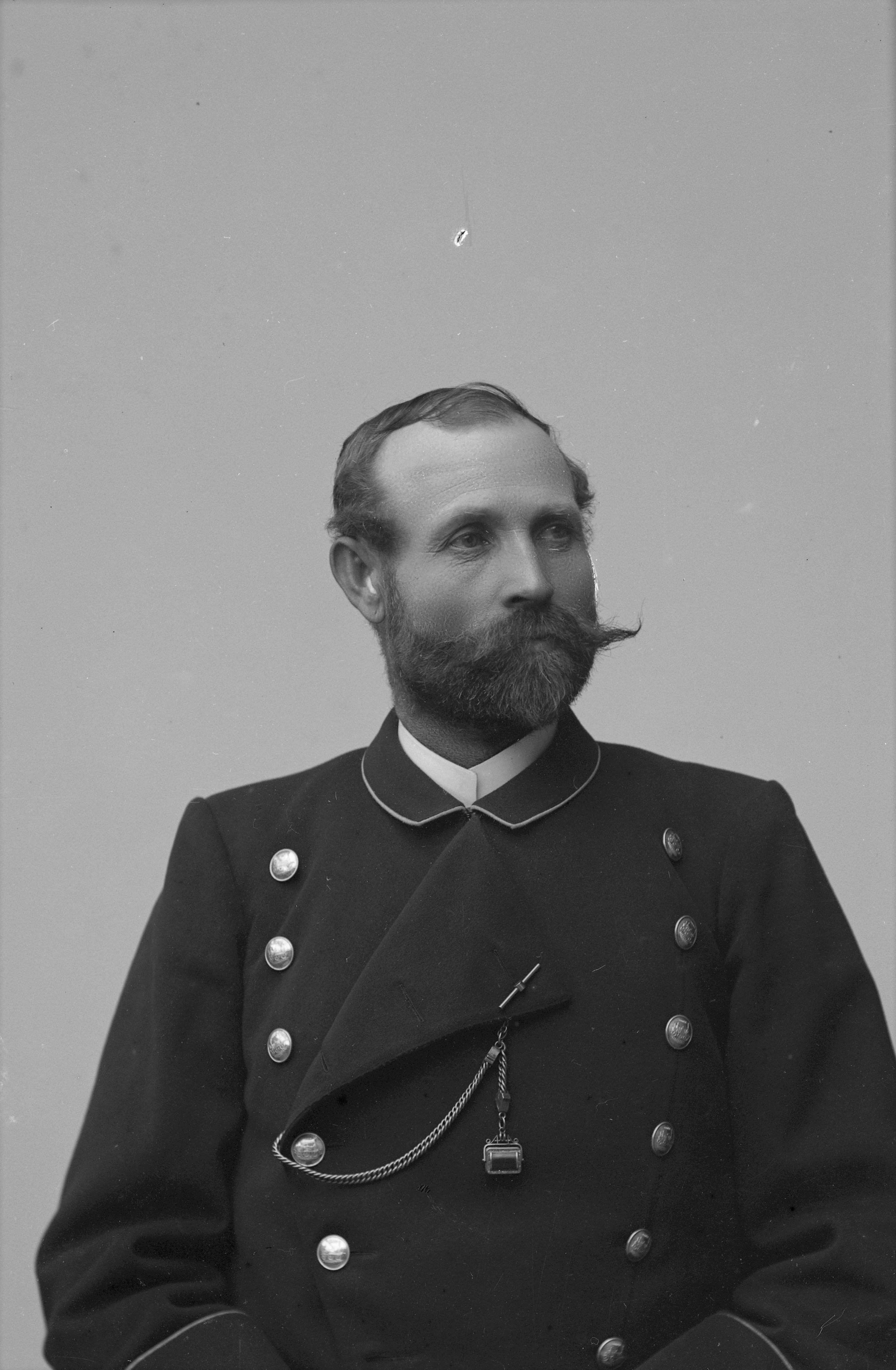 Porträtt i halvfigur av Nils Persson Pramberg, iklädd yrkesuniform.
