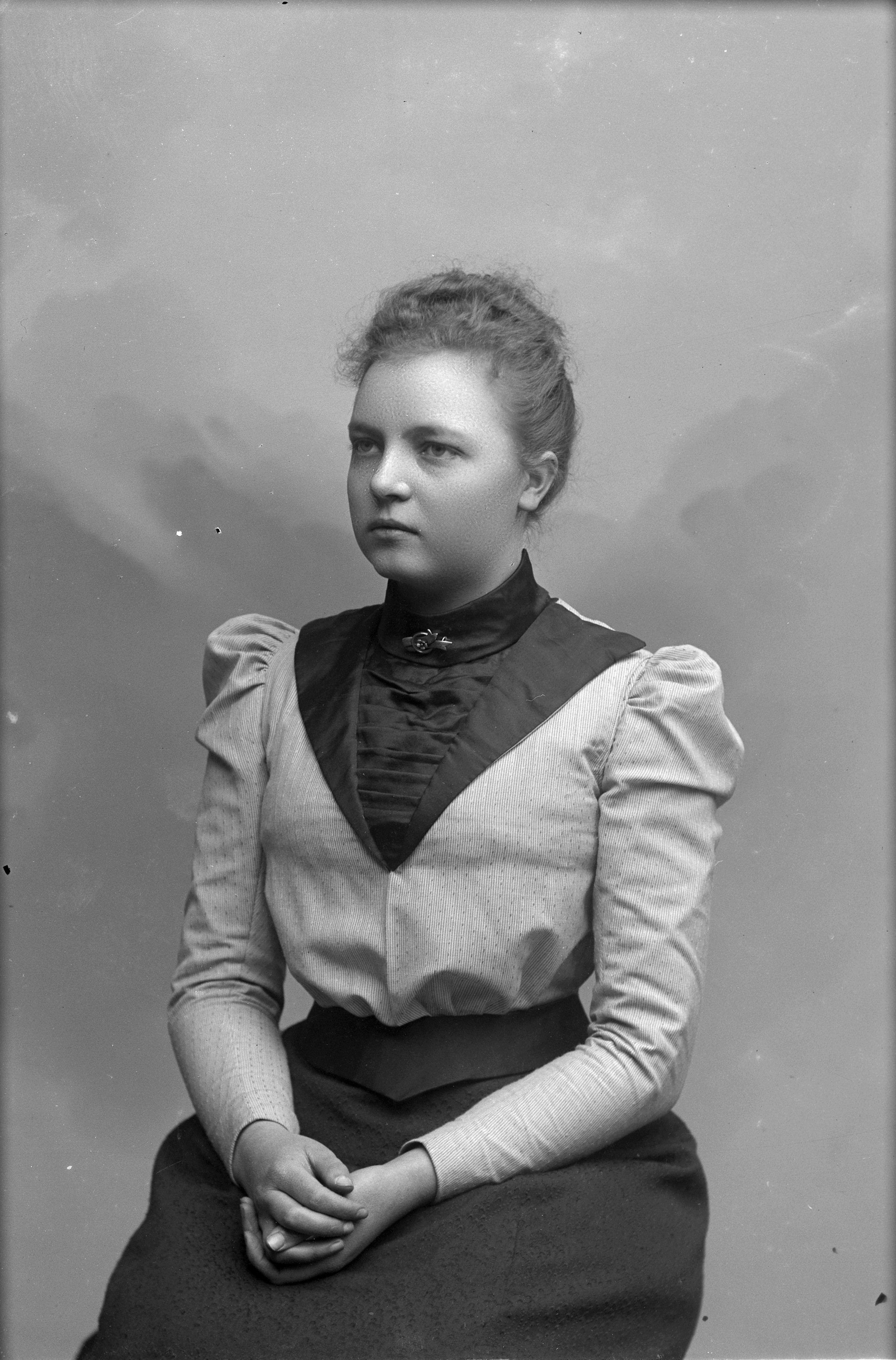 Beskrivning: Porträtt i halvfigur av Ida Holm.